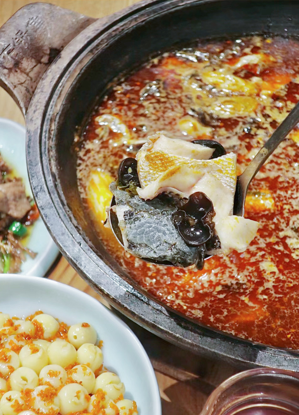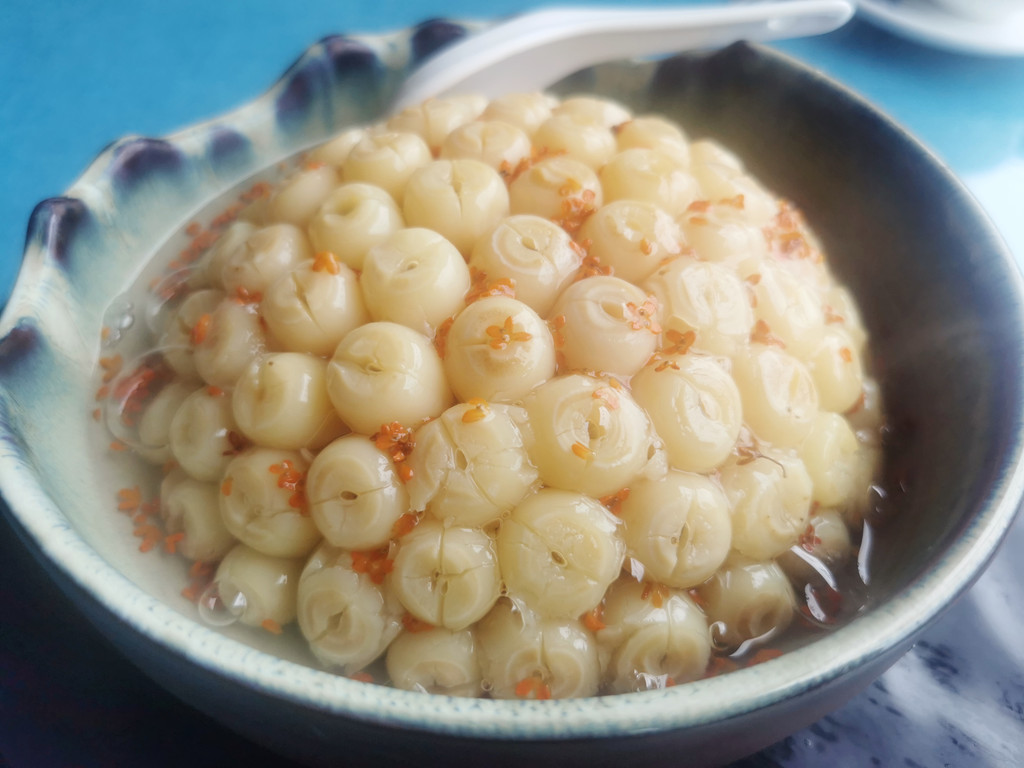 午餐去了岚谷婆媳对面的闽味私厨,同样是本地好评餐厅,只可惜疫情刚过食客稀少,招牌岩茶土鸡,装菜的容器就是只活脱脱的大公鸡,鸡肉香嫩入味,黑笋五花肉爽脆下饭,收藏打卡店家还热情赠送了桂花莲子,没想到这道菜却是今天所有菜品里之惊喜所在,莲子是当地的特产,软糯香甜,每一口都粉粉糯糯的,甜度刚刚好,带点桂花香味,造型被摆成一个莲蓬状,作为餐后甜品,真是既好看又好吃,那么大一盆我们居然都吃完了。