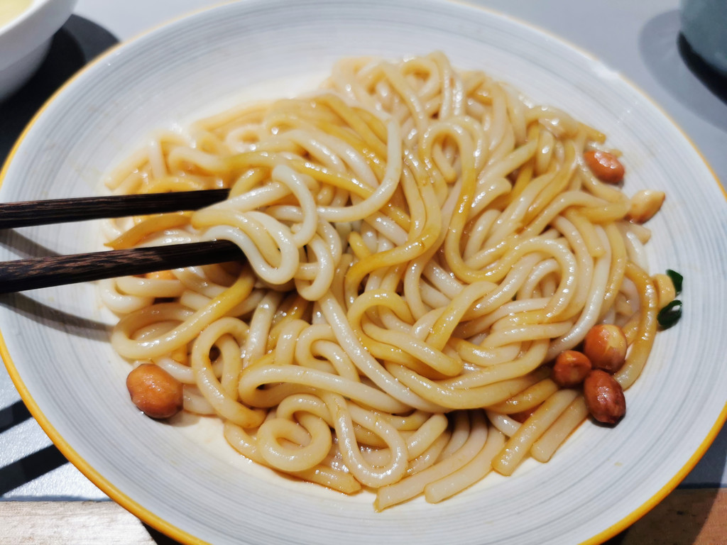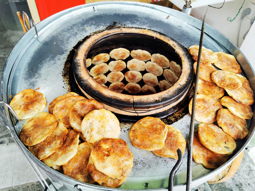 早餐去了后街上的真味缘煎饺,太不起眼的店面,绝对的苍蝇馆子,其实就是一个弄堂遮个顶,路边放了个小档口,本地人不少,慕名而来的游客也很多,熙熙攘攘来往不绝,生意很是火爆,听说也很任性,每天售罄就早早收工,煎饺其实是饺子形状的水煎包,个头不大,一口一个,脆皮香口,却也没有传说中那般惊艳,拌面永远好吃还是因为猪油灵魂所在,对街不远就是名声在外的武夷旧街小光饼,小光饼非常薄脆,梅干菜油香浓郁,十元六个,但一定要现出锅趁热才好吃,买了带过来配着真味缘的豆浆倒是个不错的组合。