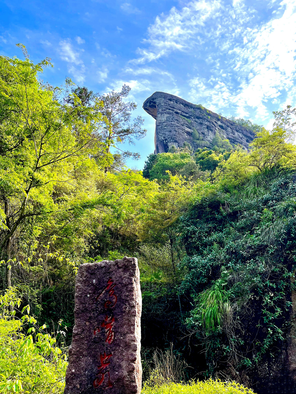 鹰嘴岩,武夷山最奇特的岩峰,从古崖居往西行约数百米,便可看见一座形似雄鹰的巨岩,光秃秃的岩顶,东端向前突出,尖曲如喙,宛如一只展翅欲飞、搏击长空的雄鹰。