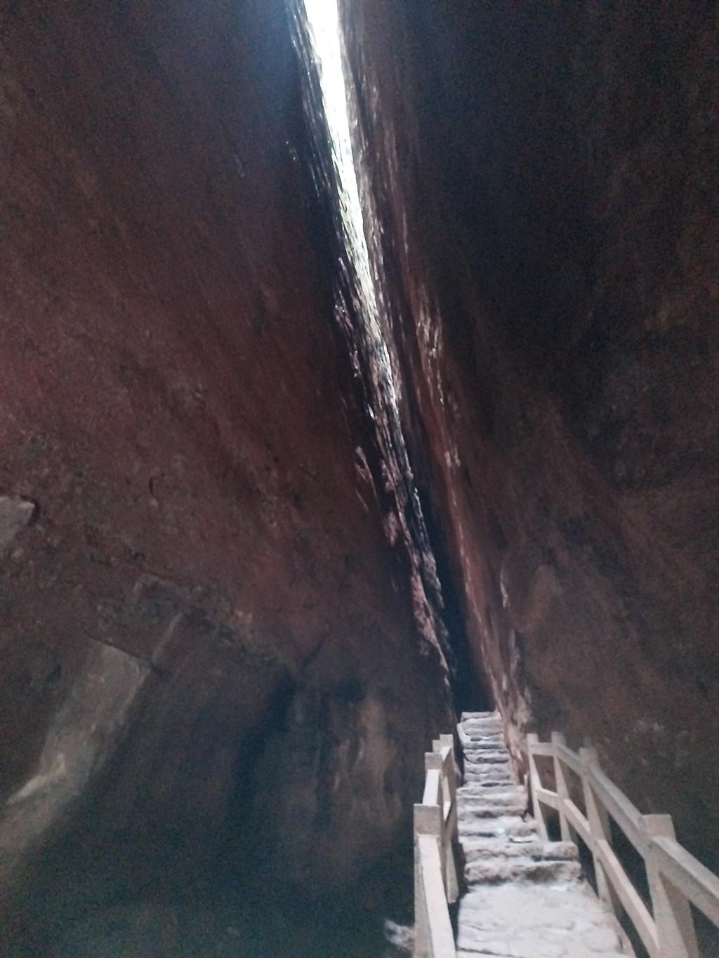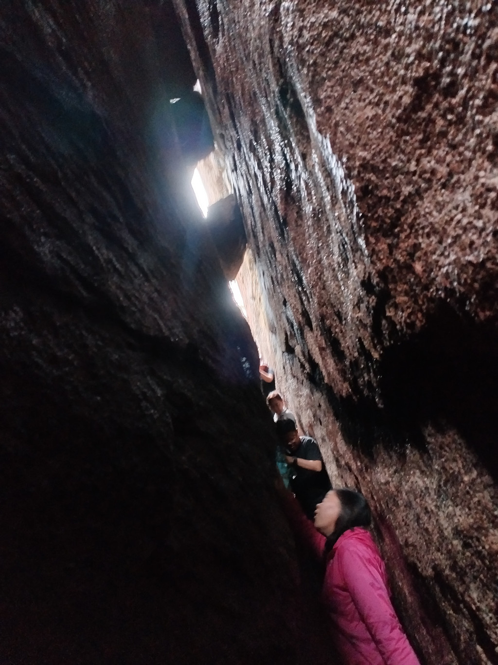 阿李认为,太姥山中最险的花岗岩洞是一线天。阿李在武夷山中爬过一线天,轻松通过。到了太姥山,再过一线天,阿李发现自己很难直面而行,只有侧着身才能艰难通过。太姥山的一线天不仅狭窄,而且很长,很高,里面还很黑,需要摸索着前进——稍不注意,不是头撞上了花岗岩壁,就是膝盖被岩壁顶住了。要想通过,不仅要侧着身,还要低下头弯下腰。
