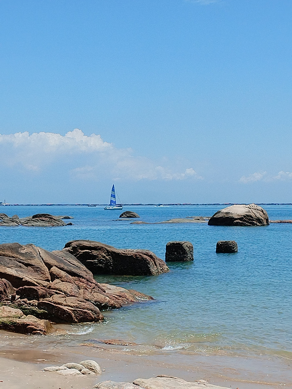 东山岛被誉为东方马尔代夫,旅游业发展迅速。它有多个月牙形的美丽海湾,沙滩细腻柔软,沙质洁白。那里的海水无比湛蓝,海中有很多形态奇特的岛屿,海岸线绵延曲折。