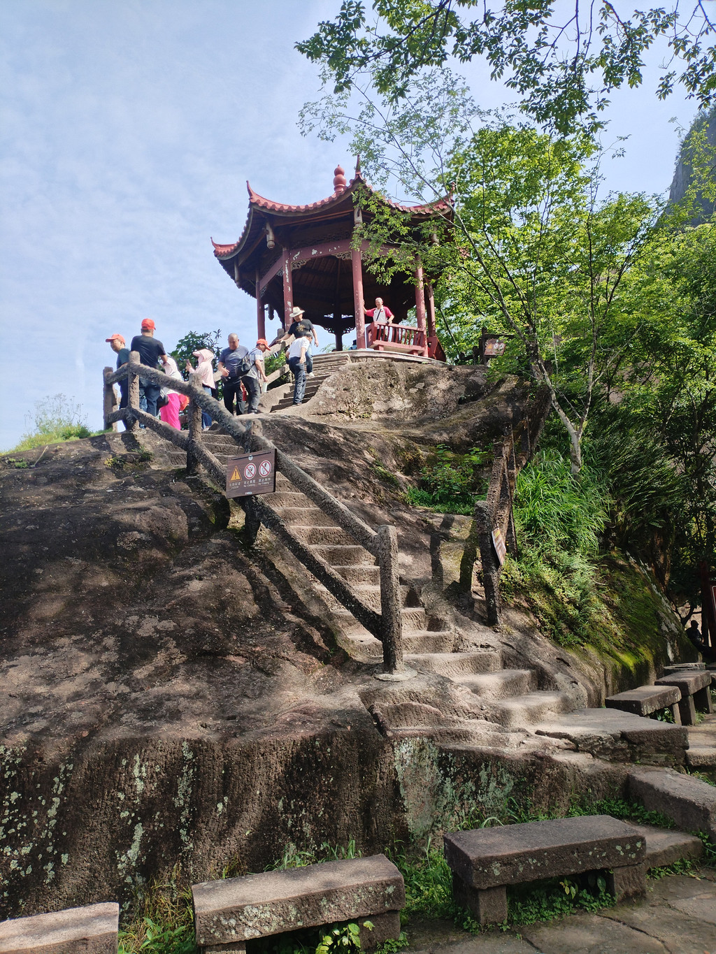 而二曲溪旁的虎啸岩,阿李原本是要去的,甚至已经乘坐景区交通车,到了虎啸岩景区入口。可景区工作人员说,上去下来至少需要两个小时!当时是下午三点半,阿李已爬过天游峰,逛了武夷宫及其周边,通过了一线天的考验,膝关节已隐隐作痛。旅游搭子们都说上下山时间太长了,不去了,阿李也就不去了——幸亏没有去,一位上了虎啸岩的团友后来告诉阿李:上去和下来至少要三个小时。
