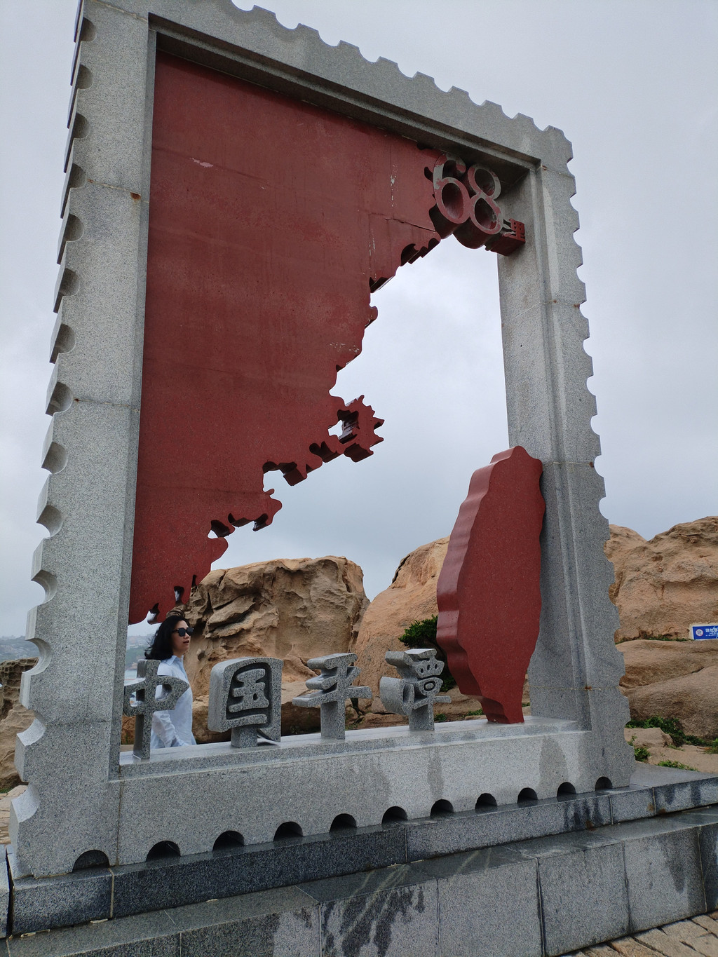 平潭海坛岛的风景很有特色——这里在台湾海峡西边,岛礁众多,海风强劲,海浪很大。我们去了68海里景区,在猴研岛、研后岛、限山岛上漫步,在风雨中纵目远眺,眺望海峡东面的宝岛——这里距台湾新竹港仅68海里,是祖国大陆距离台湾岛最近的地方。因为天气原因,加上眼力有限,阿李没有看到宝岛,只看见了远方的牛山岛。不过,看不到宝岛没关系,因为计划中的京台高速将通过平潭,到时候我们可以坐车去宝岛游玩。