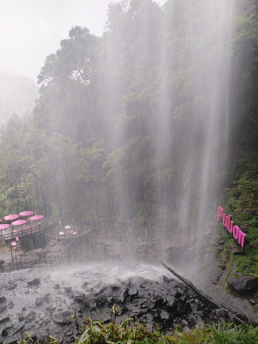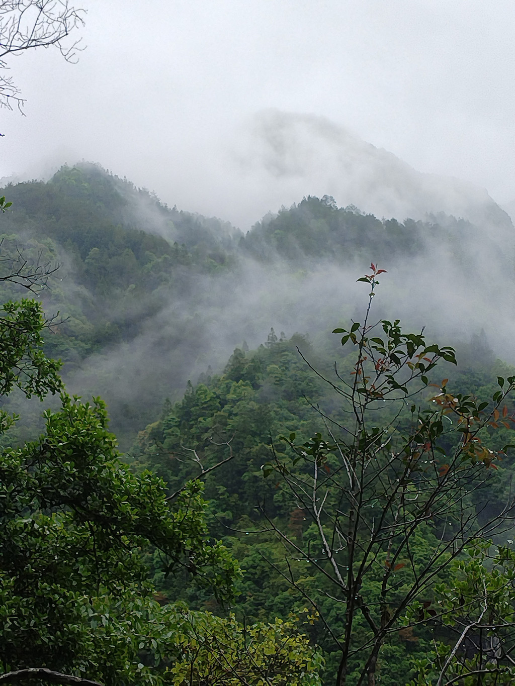 景区很大,峡谷很深,天气又时阴时雨,阿李和旅游搭子只走了景区的小环线。我们看到了鹫峰山脉中如仙女裙摆的喇叭漈瀑布和高达一百五十米的壮观的百丈漈瀑布,看到了峡谷中雾气升腾的美景,还看到了猕猴们在树上树下嬉戏的场景。只可惜建在两座山峰腰部的凌云栈道关闭了,我们不能登上栈道走捷径出景区。而此时,我们剩余的游玩时间不多了,不走凌云栈道,就只能从峡谷里继续往上攀爬,要绕很远的路才能出景区。时间很紧,除了加快脚步,别无他法。我们只能一心一意快速攀爬,气喘吁吁,比爬武夷山的天游峰还累——爬天游峰不赶时间,可以慢慢爬。我们费尽心力后终于从峡谷中爬了上来,顺利走出景区,在规定的集合时间前上了我们的大巴。