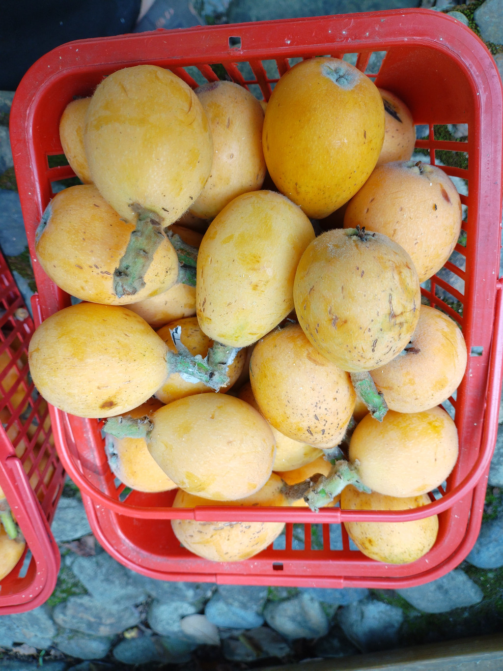我们还去了霞浦杨家溪榕枫林景区。当时正是枇杷成熟时节,公路边都是卖枇杷的小摊。我们大巴在一处小摊前停了一下,有人下去买了一小篓枇杷,吃了,说味道不错。于是大家纷纷下车去买。阿李也买了,确实好吃。榕枫林景区里有榕树和枫树,还有老牛和白鹅,但更多的是卖枇杷的小贩。枇杷按照大小分装在小篮里,金灿灿的,让人垂涎欲滴。