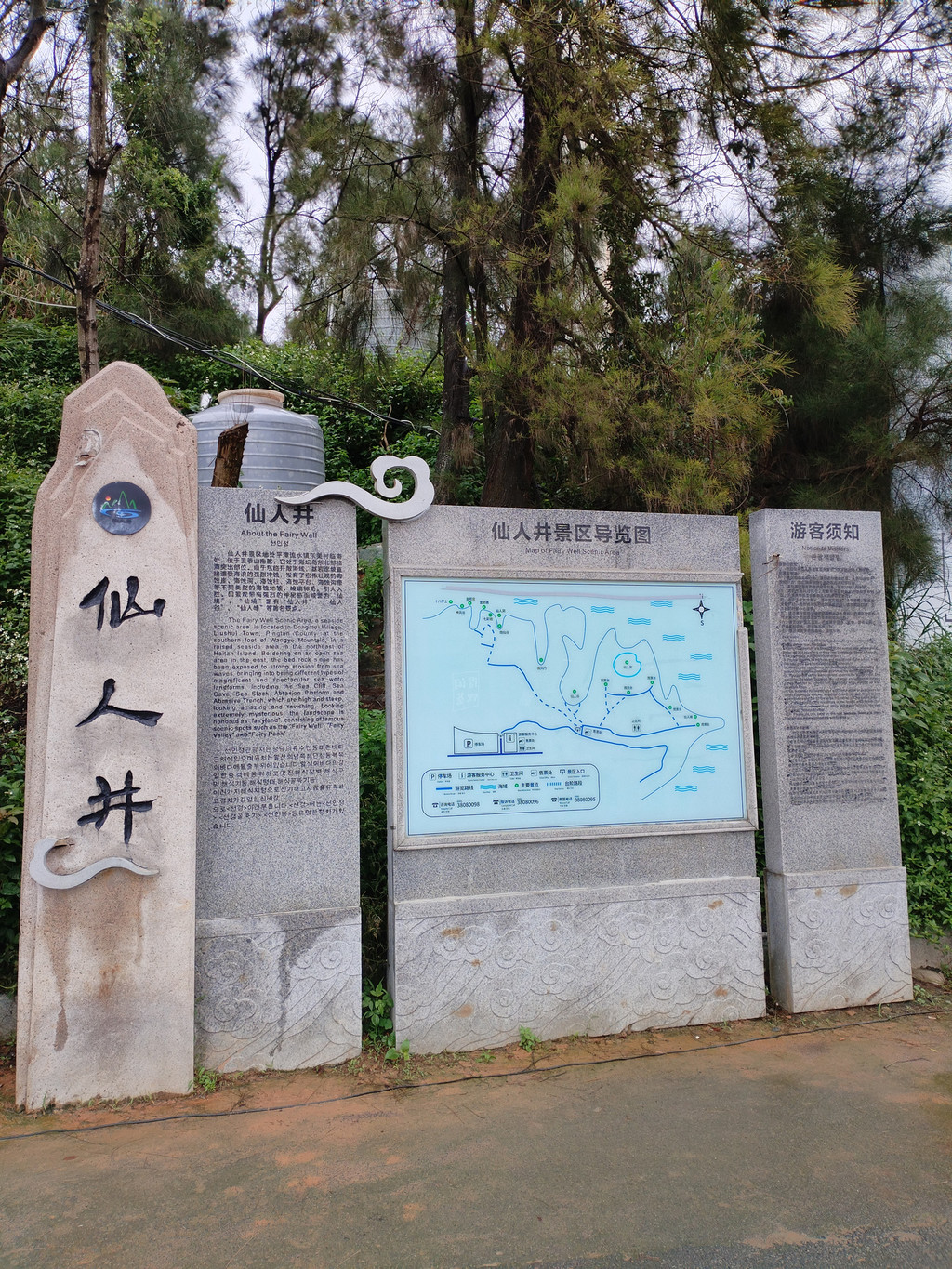 我们还去了仙人井景区。仙人井并不真是一口井,而是海边一处形似水井的环形石崖,属于我国少见的火山岩海蚀天窗地貌。它深四十多米,井口直径五十多米,底部有三个洞与大海相通。我们站在井边俯视井底,只见海浪从三个洞涌进井里,不停撞击井壁,并且互相撕咬,发出阵阵吼声,让阿李不禁有些胆寒。