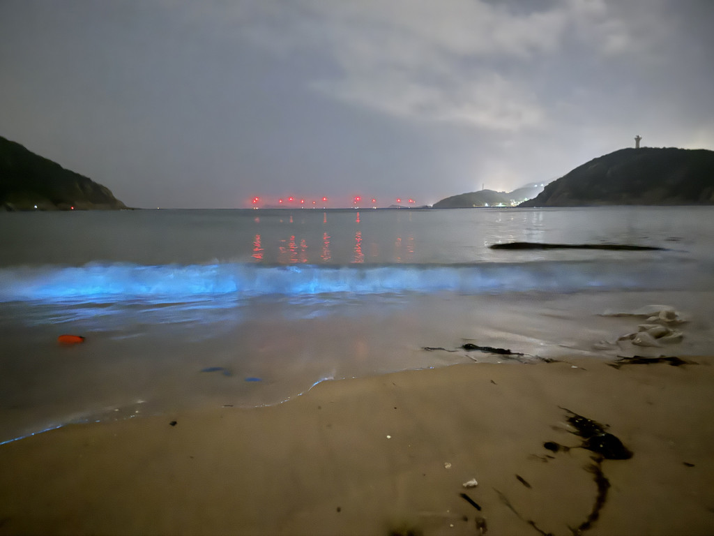 我们到平潭的那个晚上,部分团友去海边追寻蓝眼泪——平潭海坛岛的蓝眼泪声名远播,很多人来平潭主要是为了欣赏蓝眼泪。所谓蓝眼泪,并不真的是蓝色眼泪。它其实是海水中会发光的浮游生物受到海浪拍打时发出的浅蓝色的光,发光的浮游生物多了,就形成一片荧光蓝海,就像大海流出的眼泪。并不是所有的海边会出现蓝眼泪,也不是每个夜晚都有蓝眼泪。只有在特定地方特定季节的晚上,才会看到蓝眼泪。去看蓝眼泪的团友晚上八点就出发了,半夜十二点才回来——其实路程并不远,但那晚看蓝眼泪的人太多了,通往海边的路都被车子堵死了。好在他们很幸运,最终看到了蓝眼泪,堵了那么久也值了。阿李没有去看蓝眼泪,但阿李的旅游搭子去了,团友们也在群里分享了他们拍的蓝眼泪照片,阿李也算是间接看到了平潭的蓝眼泪吧。