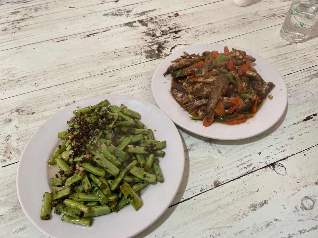 梅干菜干煸四季豆倒是出乎意料,老板在炒四季豆之前特地过来询问是否要加梅干菜,庆幸听了老板的建议