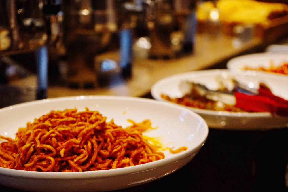 酒店早上也有自助早餐提供,种类多样,菜品丰富。