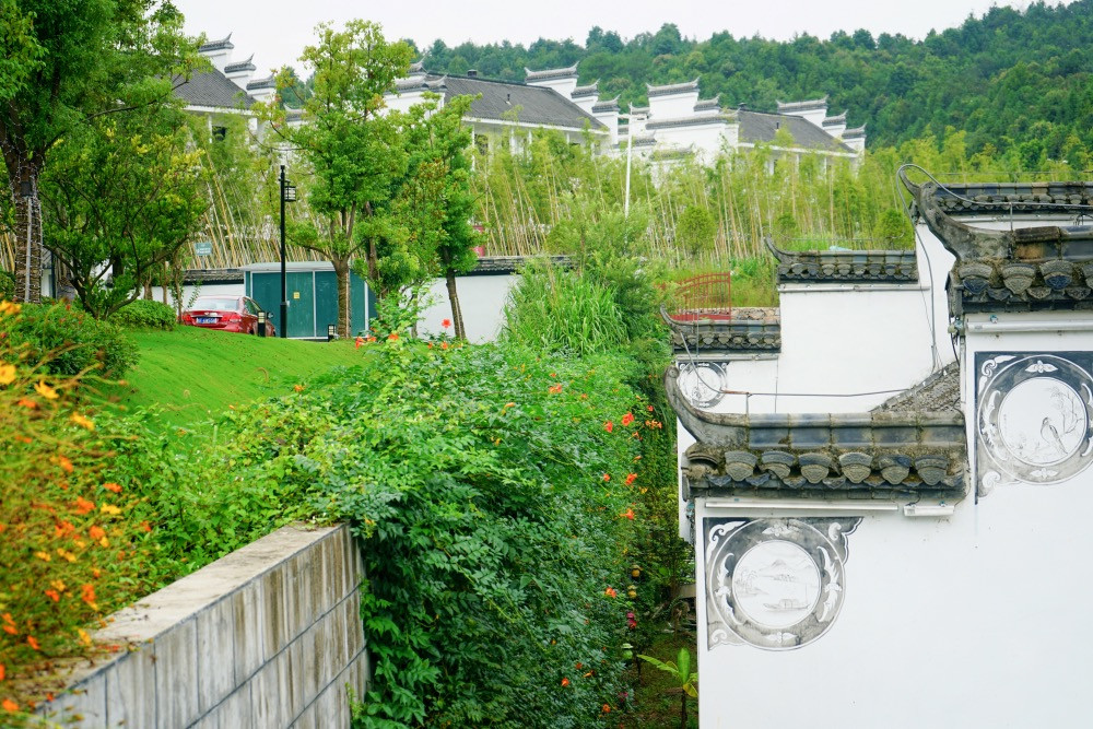 漫步在阅徽堂,步步皆景,绿树点缀黛瓦,绿水倒映粉壁...