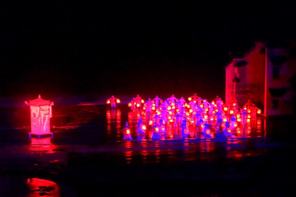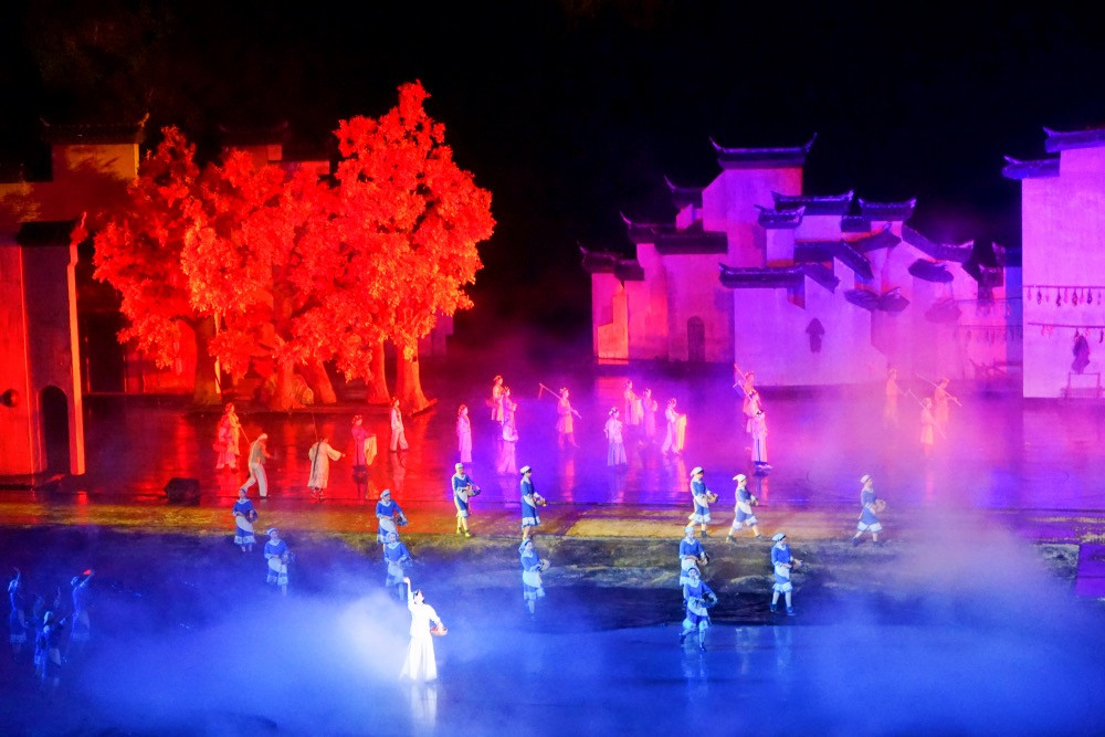 从下午4点之后,小镇的演出就开始了,从开城迎宾到“贵妃出浴”、“金榜题名”、“新娘茶艺”、“盛世红颜”等节目,一直到晚上8点的大型山水实景演出,凭借当前最先进的声光电和大型移动舞台技术,汇聚成四幕精彩大戏,再现古代诗词歌赋所描绘的“梦中家园”,展现了徽州文化的厚重和耕读文明的精髓,体验久违的乡风、乡情、乡愁,是婺源之旅非看不可的演出。