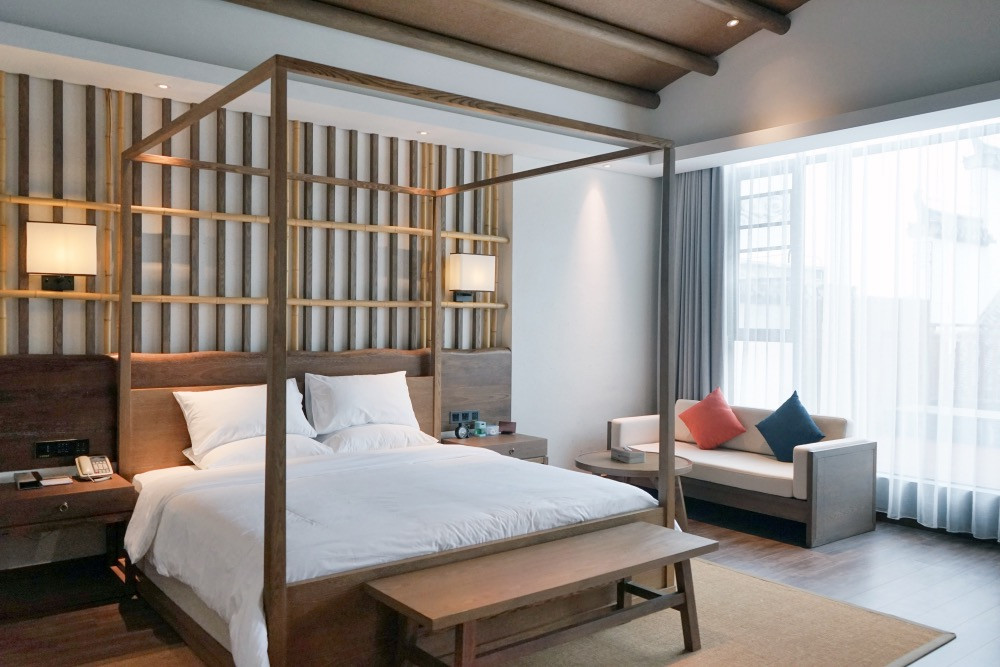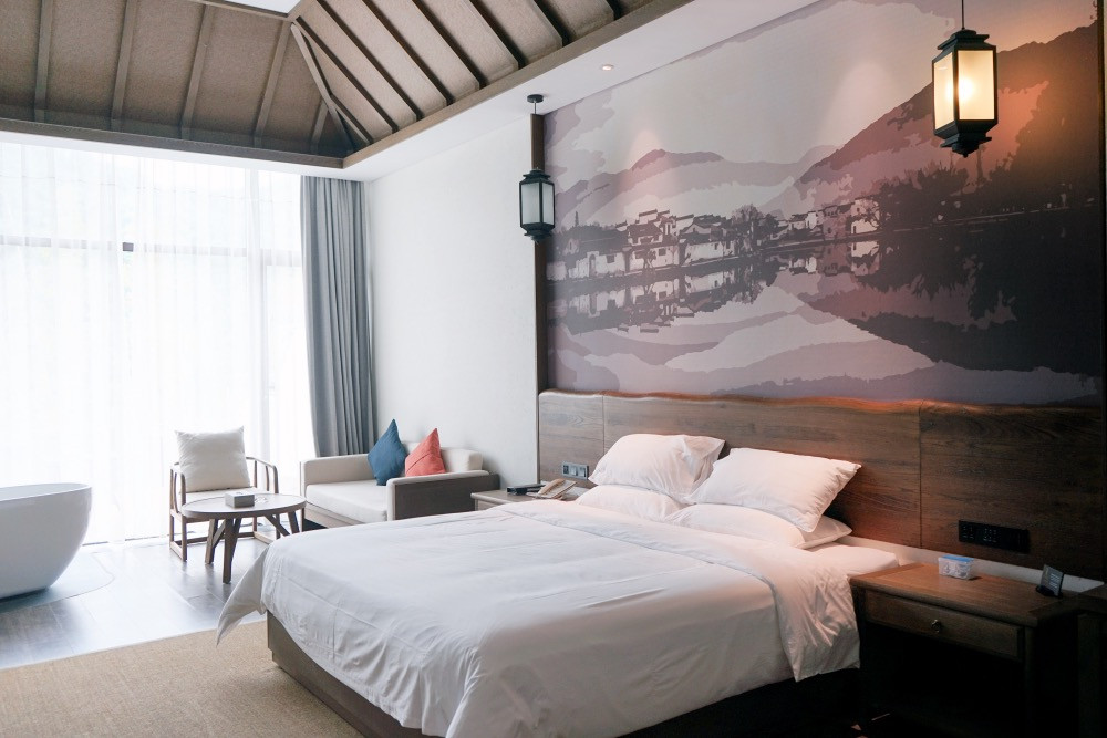 阅徽堂酒店在传统的风格基础上,还融合了大量的简约风,使整体感既尊重传统,又别具创新。这种新派简约风越来越受到年轻人和具有文化素养的人士的喜爱。