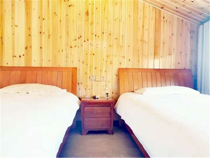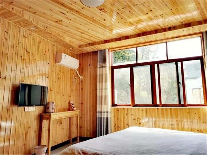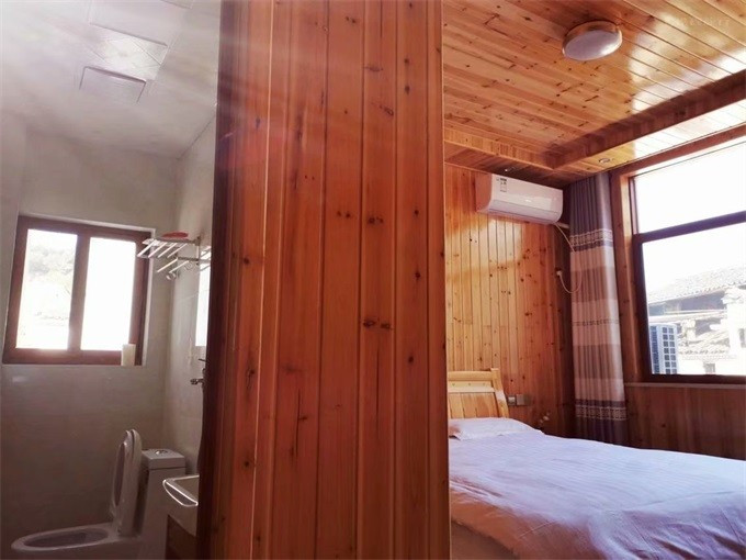 全实木装修风格,物件也很新,各种设施很齐全,房间整体给人一种整洁、清新的氛围,布局设计上以简单干净为主,实木本身自带着让人舒适的感觉。简约素雅之上增添装饰画与文艺品的点缀。
