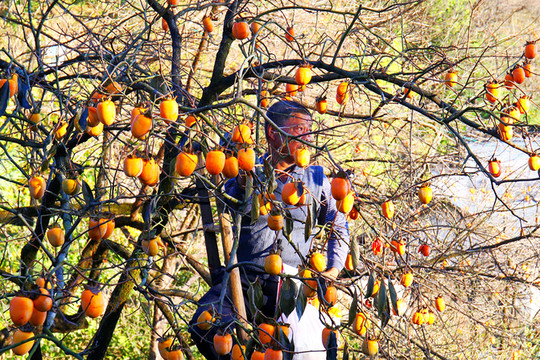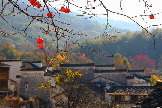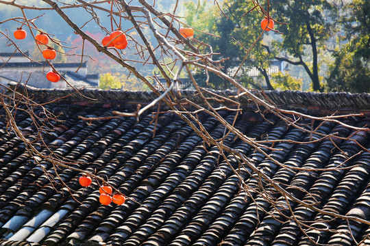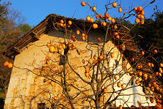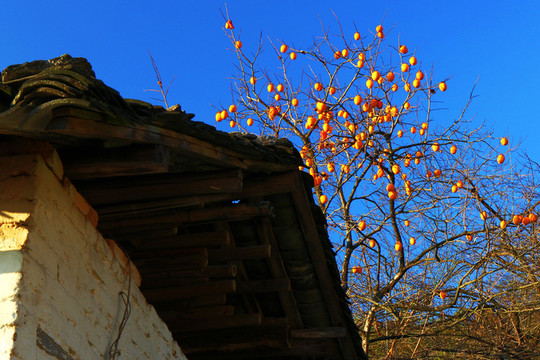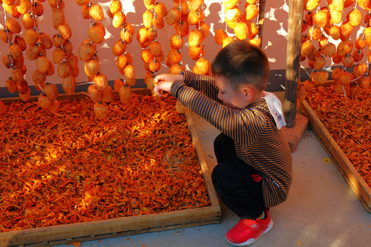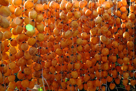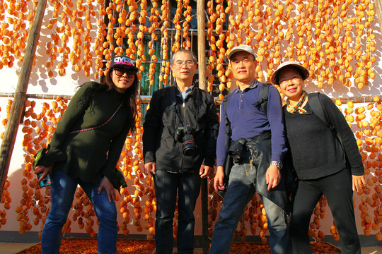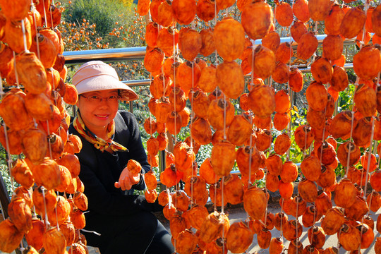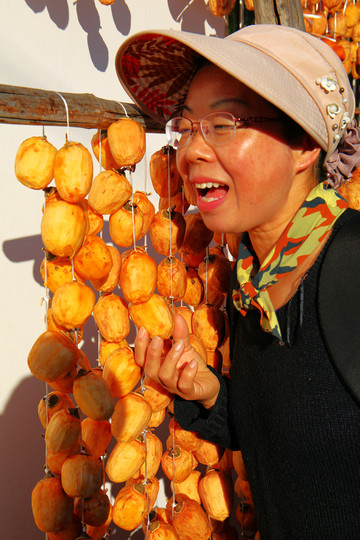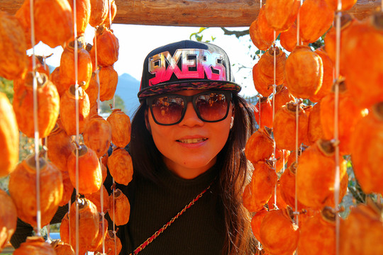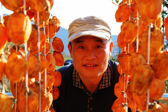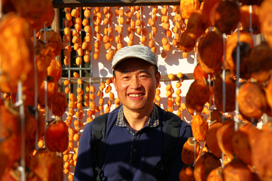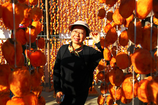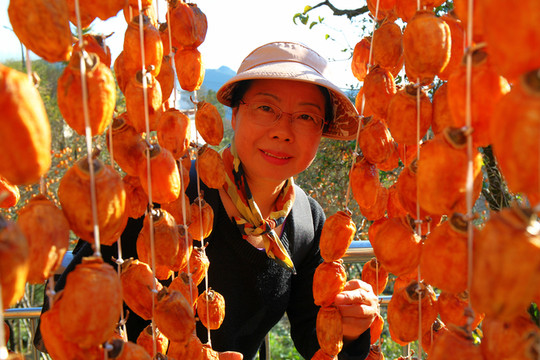 进到村头,可以看见家家户户门口都挂满了晾晒的灯笼柿,房前屋后随处可见红澄澄的柿子树,一颗颗压弯了枝头。