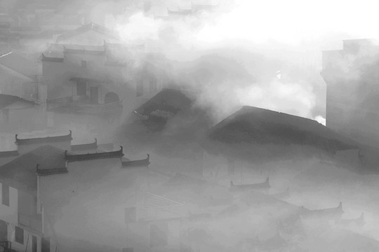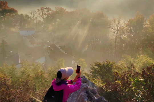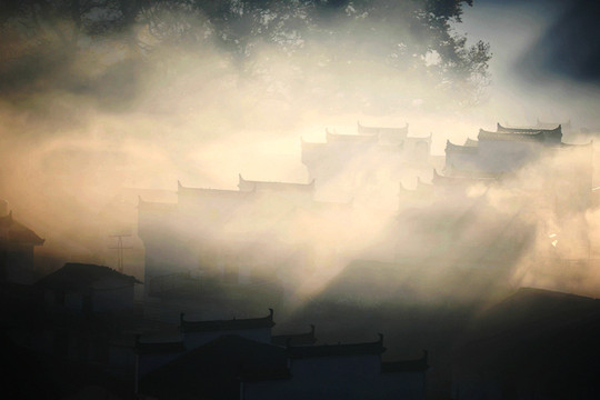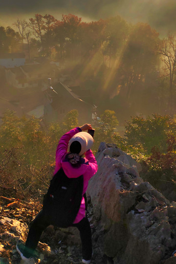 程村里村民点起制造氛围的烟雾太浓了,周围全是烟火味,整个村子看起来也被笼罩在雾霾中,在太阳升起的那一瞬间,没有拍摄到丁达尔光效果,几乎全部拍摄的是废片。