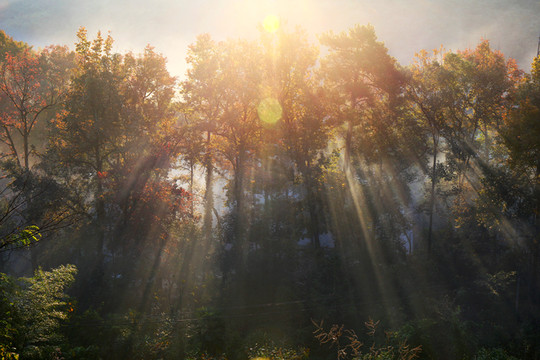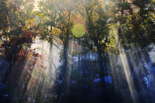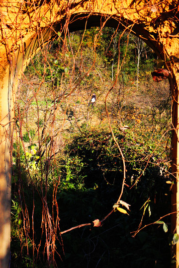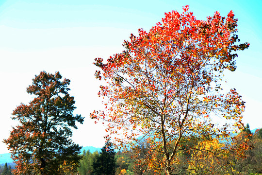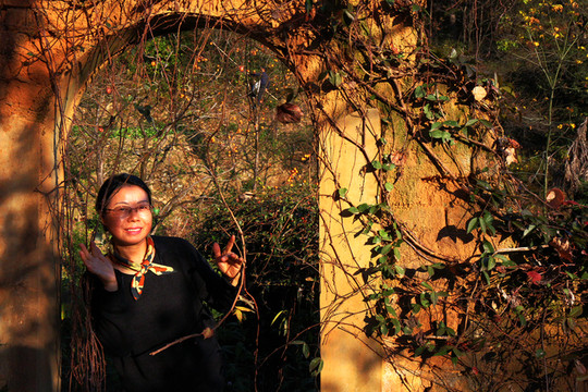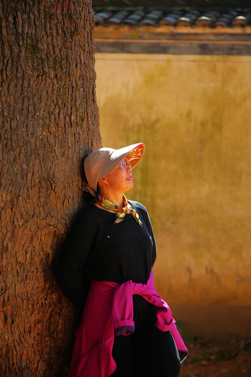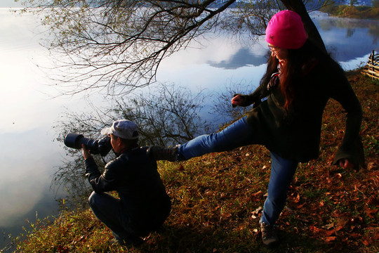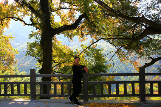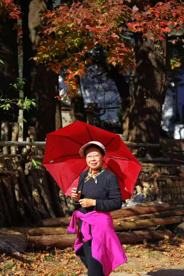 我们借助免费的道具拍摄了几张相片,阳光变化很快,十几分钟后,枫树上的阳光就照不到了。