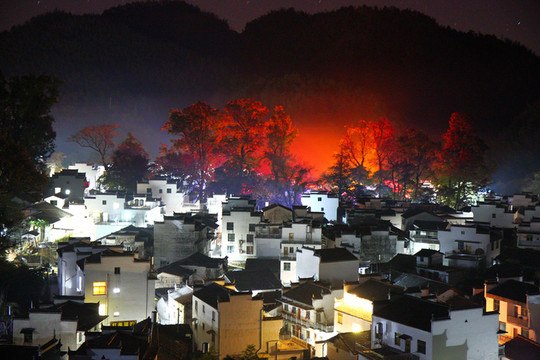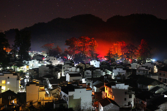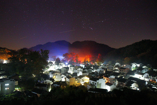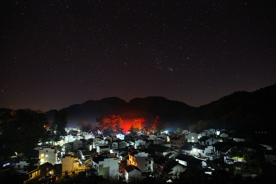 首先去观景台拍摄了几张程村的夜景。没有想到看起来黑乎乎的村庄拍摄起来是这么漂亮。