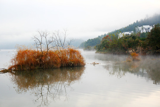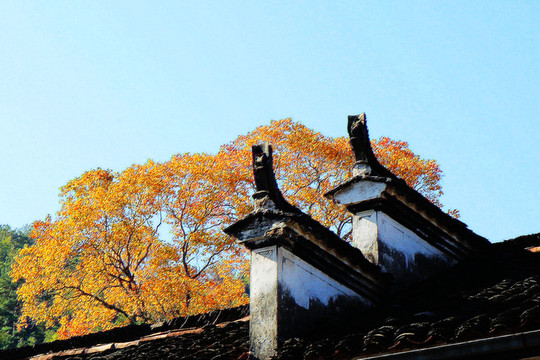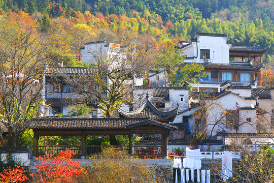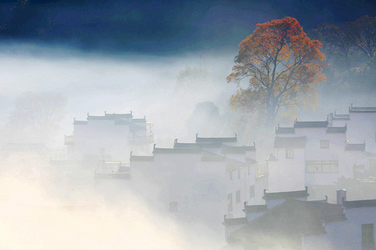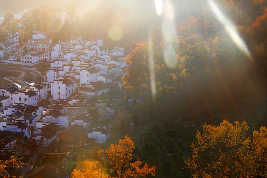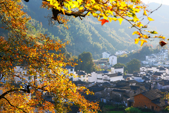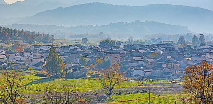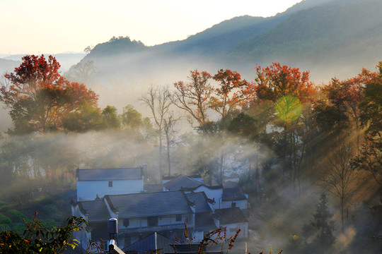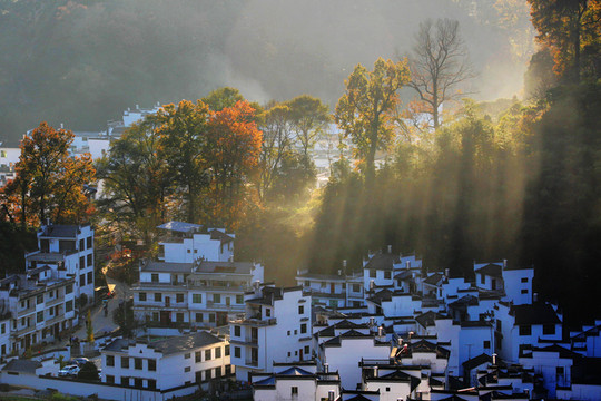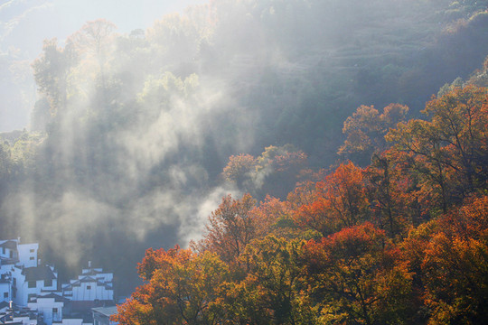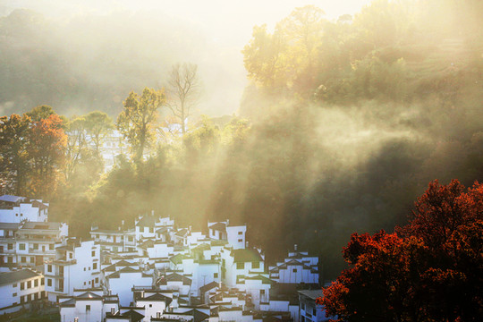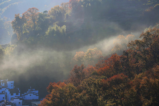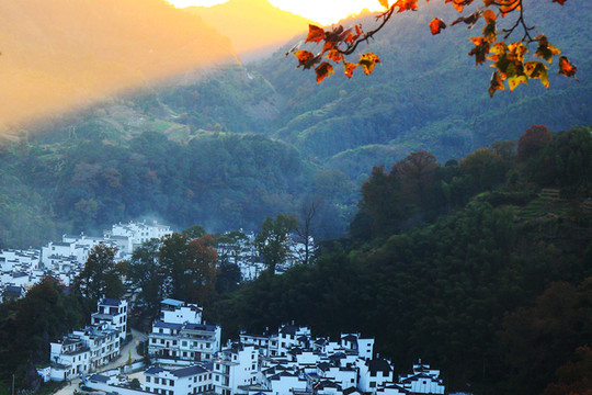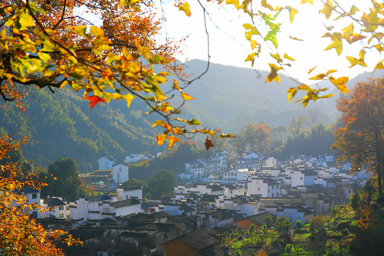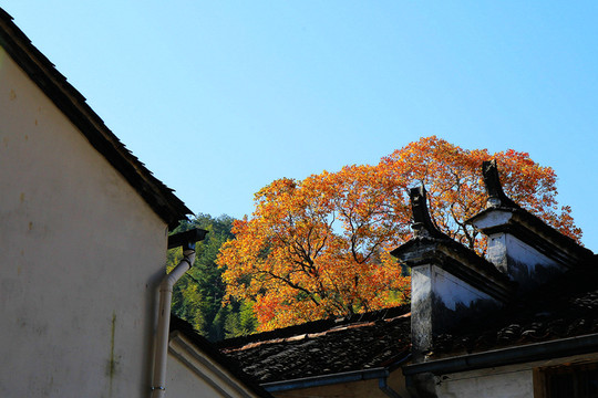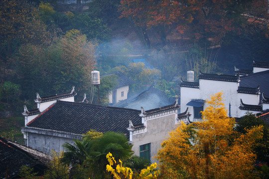 上网随便一搜婺源秋色,铺天盖地全是石城晨雾缭绕下的红枫、白墙、黑瓦,当然婺源的秋色不全在石城,我们第一站去的龙尾村,也是婺源十大赏秋地之一。