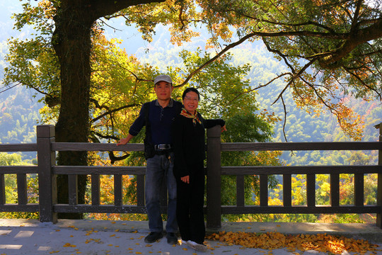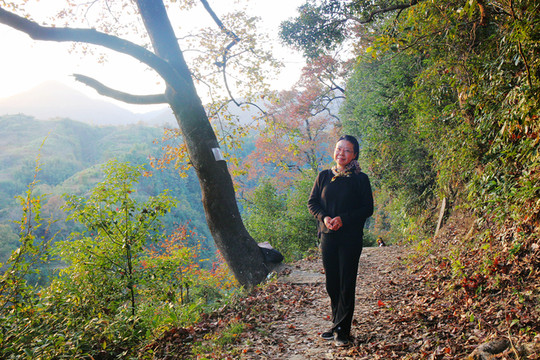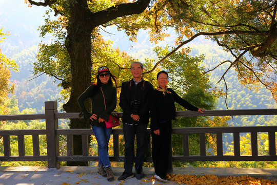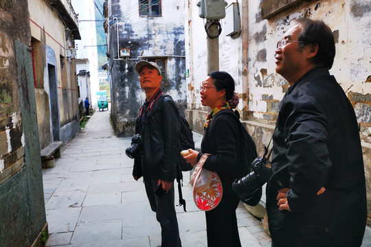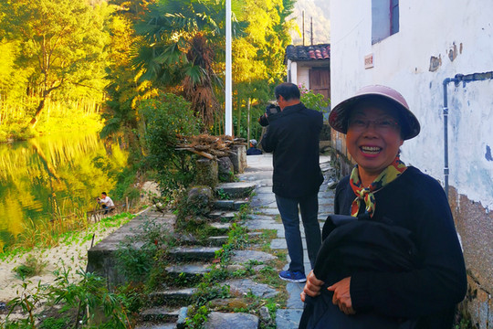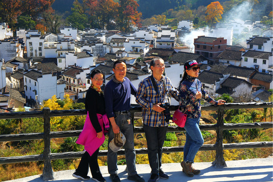 从程村出来,看见雾霾散尽,我们返回观景台拍摄了几张合影,然后拿行李退房。