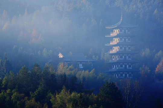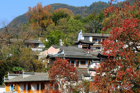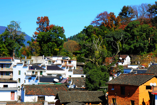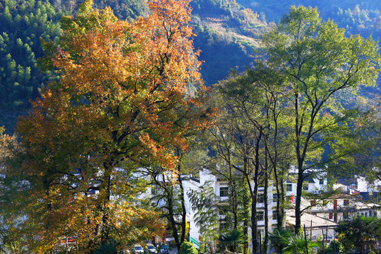 围绕村庄有一圈参天大树,枫叶还没有完全变红,几十栋建筑依山而建,这里被摄影爱好者誉为“天上人家”,不过在我看来,有点言过其实。