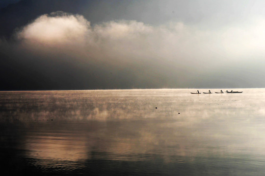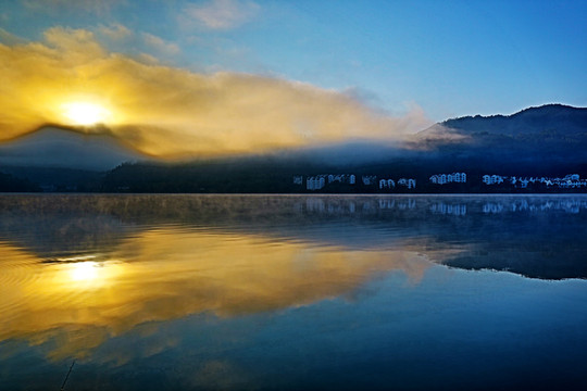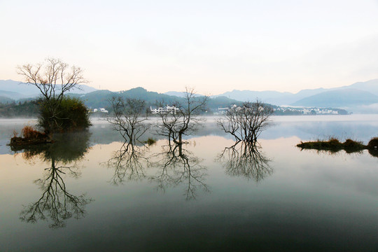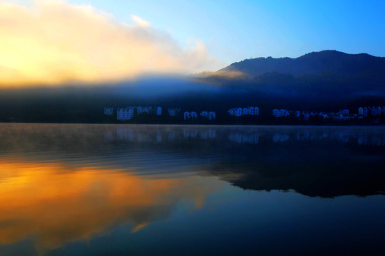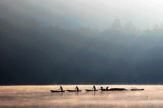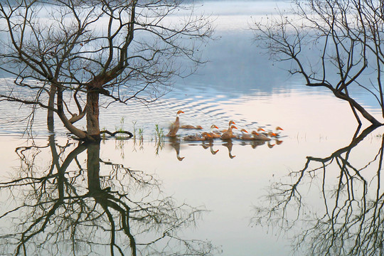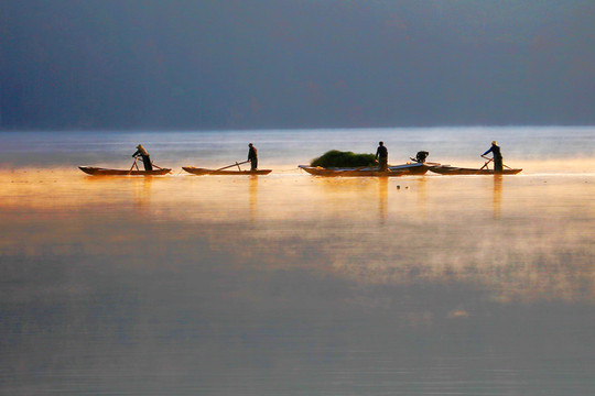 第二天早晨六点钟,我们出发前往不远处的奇墅湖。