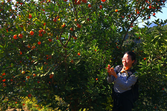 村前山坡上种了几棵桔子树,硕果满枝,我们摘了几棵尝了尝,味道还不错。