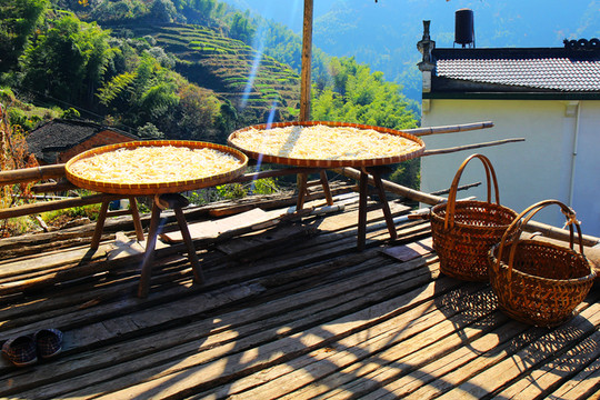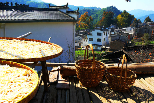 姬公尖位于700米的高山上,种植柿子树可以说是靠山吃山。当地特有的沙土土壤以及昼夜的巨大温差,造就姬公尖柿子甘甜的秘诀。早年由于运输不便,村民大都把柿子晒成柿饼出售。村内上至白发老人,下至孩童,都能熟谙做柿饼的方法和流程。农历霜降后,当树上的柿子成熟后,村民就会用特制的竹竿将柿子摘下来,挑选好的然后除皮,削皮洗净后的柿子,被串成了串,挂在院中晾晒,依靠阳光的力量让其自然脱水,到了夜里再收回屋内,用柿子皮盖住,第二天再将柿子和柿子皮分别拿出来继续晾晒。如此反复几十次,直至柿饼表面出现白霜。