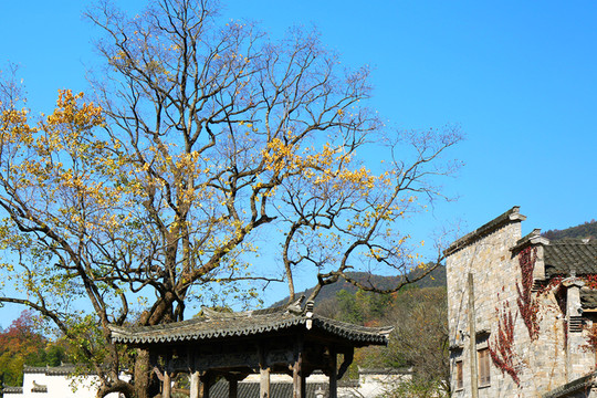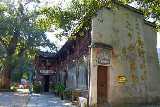 从岸边离开后,我们又在村庄里转了转,村庄不大,许多房子已经破败不堪,但徽派建筑的特点——青砖白壁马头墙,就是要配合古旧的样子才有味道。据说这里是四大名砚之一“龙尾砚”的砚石产地。 前些年还有村民在我们刚刚看过的小河里捡到过价值五万块的砚石原料,目前河水还能保持碧绿如玉、清澈明净实在难能可贵。