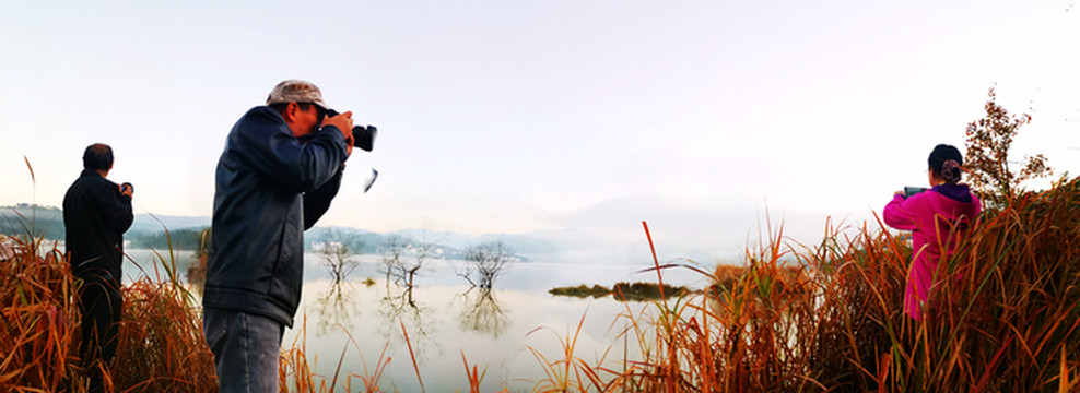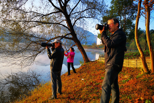 第二天早晨的石城秋色,是我们拍摄的重点,所以清晨六点钟不到,我们就出门,加入了熙熙攘攘的拍照大军。