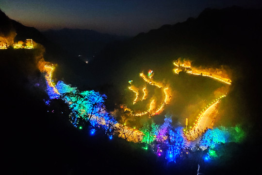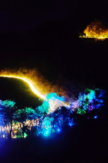 从红杉林景区出来后,我们继续沿着安徽川藏线返回南京,大约傍晚六点钟左右到了著名的桃岭72拐处。天色已黑,72拐道路被打上了灯光,看起来蛮不错。