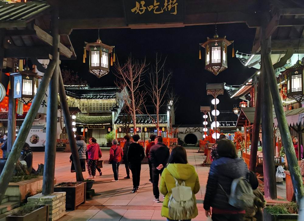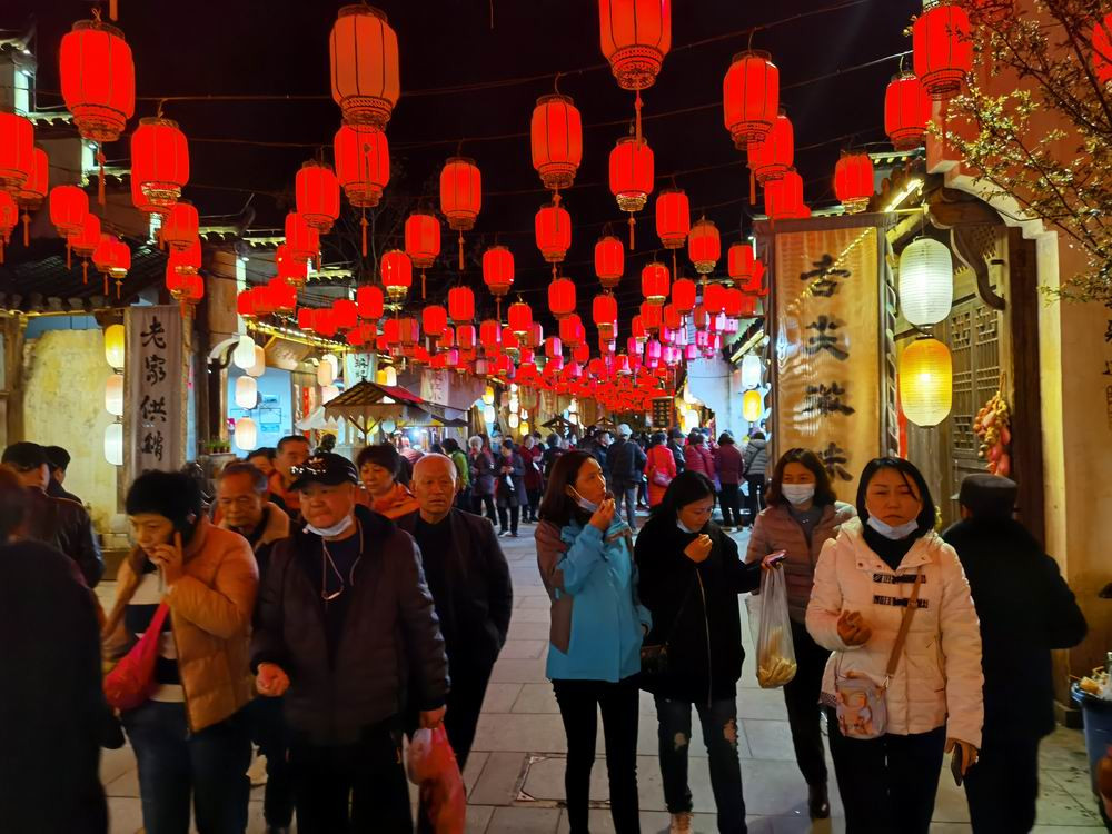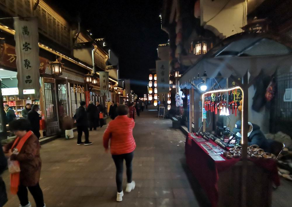 梦里老家项目是一座活着的徽州古镇,实现了吃、住、行、游、娱、购一站式旅游服务,填补了婺源夜间休闲旅游市场的空白,增强景区体验感,促进人气集聚。照片摄于梦里老家·演艺小镇的旅游商品街。