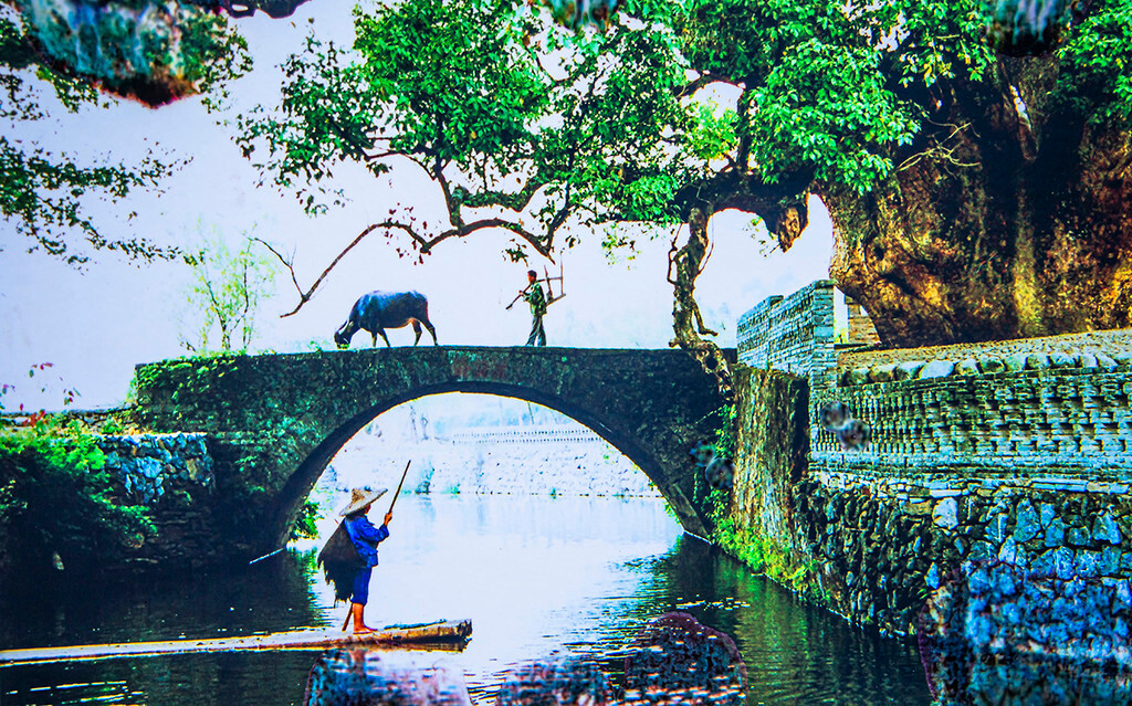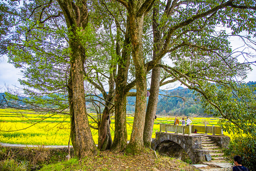 严田古樟民俗园,走在乡间的小路上严田古樟民俗园里,走在乡间的小路上感受如梦境般的田园生活,走进婺源严田村,映入眼帘的第一幅画卷,就是枝繁叶茂的古樟边,渔夫披着蓑衣戴着斗笠撑着竹排缓缓前行,老农牵着耕牛走过石拱桥暮归的动人场面。走红网络经久不衰的经典照片就是在此地取景拍摄。在今天,只有在严田乡间田野,才会感受到这样有别于城市的美好景色。如果要问我有什么特色体验,那当然就是坐在茶馆里,一边喝茶一边看渔民船穿过小桥,桥上村民赶牛走过,两旁樟树成荫,感受一幅乡村田园景跃然眼前。欣喜之时,不由轻声哼唱起:“走在乡间的小路上,暮归的老牛是我同伴,蓝天陪朵タ阳在胸膛,缤纷的云彩是晚霞的衣裳,哼一曲乡居小唱任思绪在晚风中飞扬,多少落寞惆怅,都随晚风飘散,遗忘在乡间的小路上。