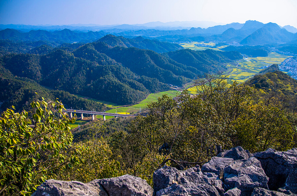 婺源最大的天然地质公园——翀山龙泉度假山庄如果春季想来婺源看油菜花,真的不用去些人山人海的景点,有许多免费又人少的地方。今天就给大家推荐一个宝藏赏花地:翀( chong)山,位于婺源县西部的斌春镇,“因山势如凤飞翀之象”而得名。翀山怪石林立,植被珍贵,潘旦、齐彦槐等历史名人留有诗文刻字,是婺源最大最有文化内涵的天然地质公园。《婺源县志》、《翀麓齐氏族谱》记载:因山势如凤飞翀之象,故名。翀山石峰,奇岩峥嵘。嶙峋怪石深藏于茂密的林木中,有的巅峰高达几丈,有的窟裂缝深十数尺,高相融,干姿百态,被人誉为"寿石王国”。石林修筑了台阶可以阶而上,越往上视野越好,石林上可以俯瞰大片大片的油菜花田,轻松get无人机视角。登上590米的翀山顶,这里可以看到满山花海,满眼的青山绿水,粉墙黛瓦,秀美的田园风光一览无余。