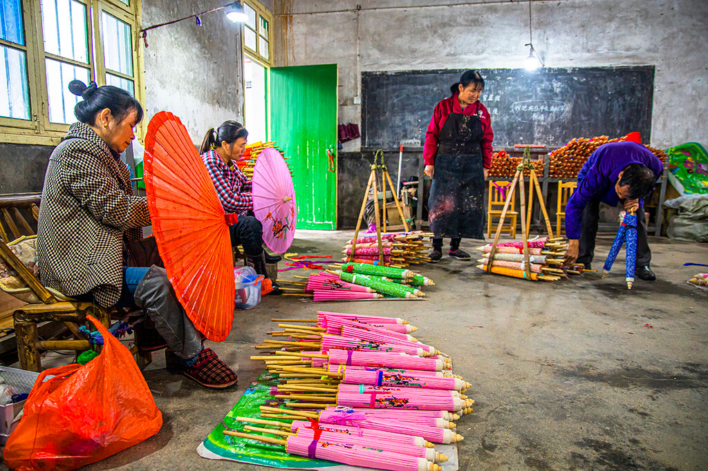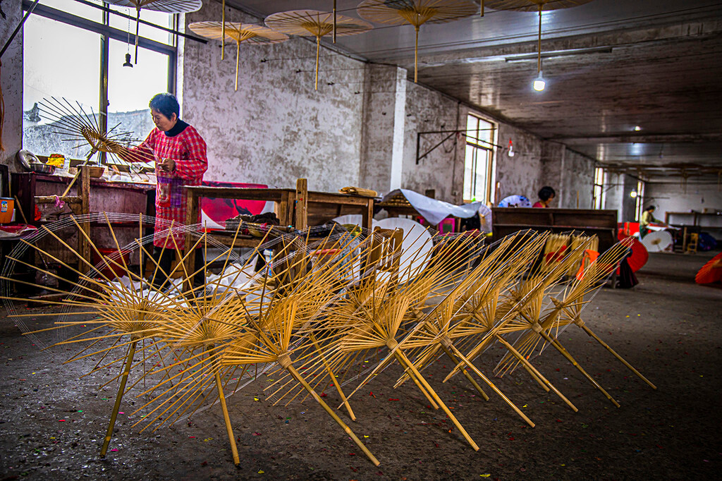 甲路油纸伞,真的很想为你撑起一片天空赋春这座小镇遇见便难以忘怀,当我走进甲路,走进甲路油纸伞厂,通过观看油纸伞老伞厂手工的制作工艺流程,我才知道,一把小小油纸伞,作为省级非物质文化遗产它承载着千年的悠久历史,凝聚着无数民间匠人的心血。早在明清,就跟着徽商的脚印走遍长江流域,在赋春,“甲路伞甲天下”,这句民谣在赋春妇孺皆知。甲路纸伞制作历史悠久、设计巧妙。天然竹片能做成自动关锁、弹跳的伞键,这是对竹的弹性之巧用;还有遇水易破的纸,上桐油后便能遮阳防水,这是纸之妙用。从宋代开始,甲路人用一棵竹,一把刀,一张纸,一根线,精巧构思,经过一代又一代匠人的不断改进完善,甲路纸伞制作工序精细、繁多,细分有六、七十道,方制作成了今天这样不失古朴却轻盈别致的油纸伞。