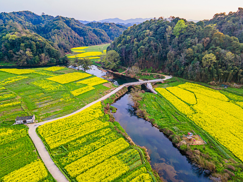 赋春,一个诗情画意的名字,一个让人向往的诗意家园,春暖花开时节,赋春盛开的油菜花随处可见。金黄的菜花与粉墙黛瓦的古民居相互辉映,古朴自然与娇美靓丽相互衬托,放佛是在水墨丹青里泼上灿烂的金黄。赋春青山苍翠,绿水环抱,云雾飘渺,油菜花成景,茶园入画,水墨丹青,美轮美奂。让人忍不住的就想背起行囊去赋春,来一场说走就走的旅途,寻找心目中的世外桃源。