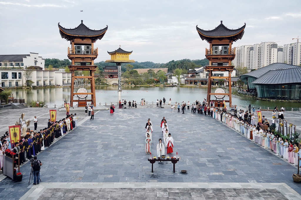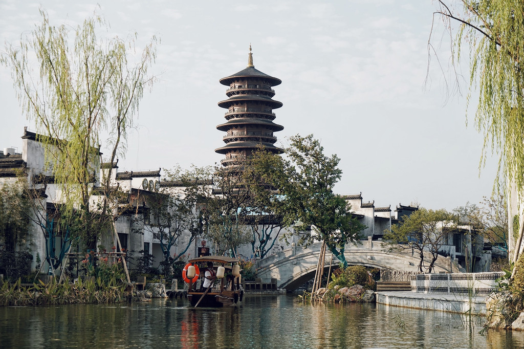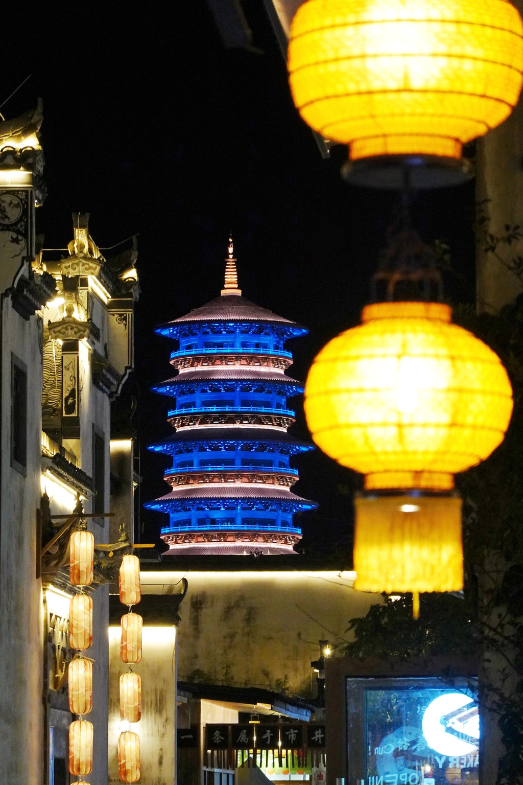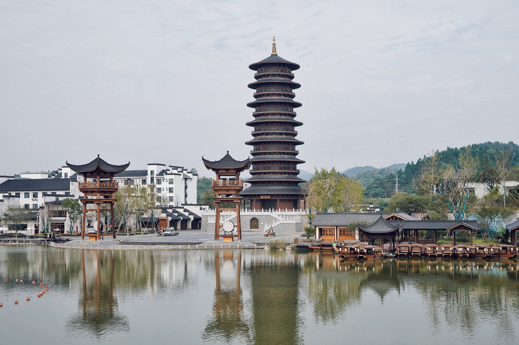 抱玉塔是婺女洲景区的地标,一共有七层,以传统榫卯结构搭建,攀爬塔顶,可以一览整个园区,是整个景区的至高点。