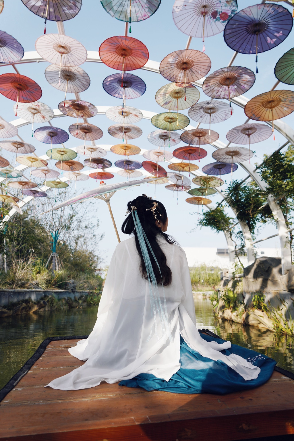 秋高气爽的天气游船再也惬意不过了,小姐姐们也可以着汉服坐游船,便是最靓丽的一道风景线。