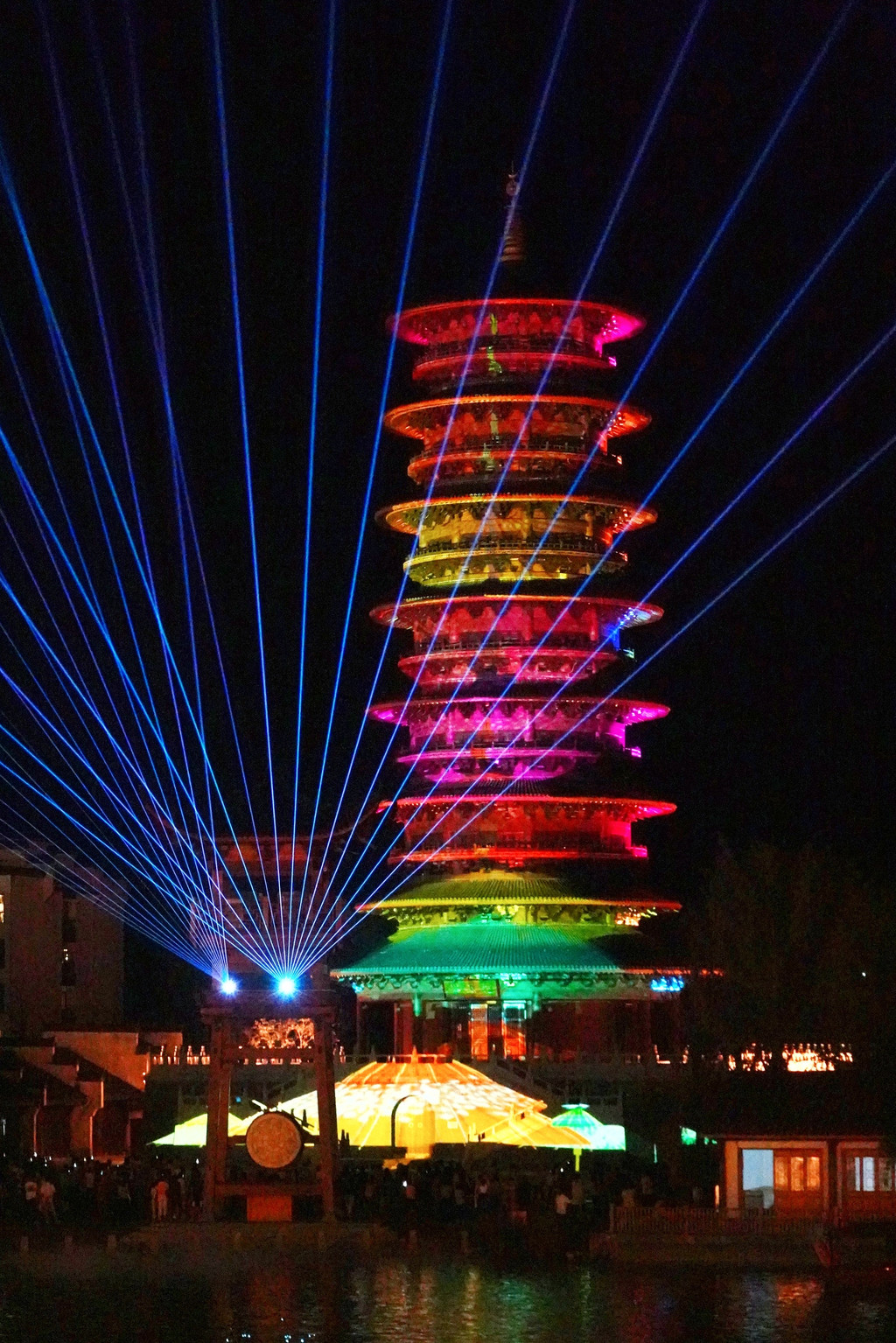 晚上在傩舞广场可以看到一场别开生面的抱玉塔“天工开婺”灯光秀,声光效果极其震撼,流光溢彩的动感灯光和音乐融为一体绚丽夺目,渲染了婺女洲最华美的夜。