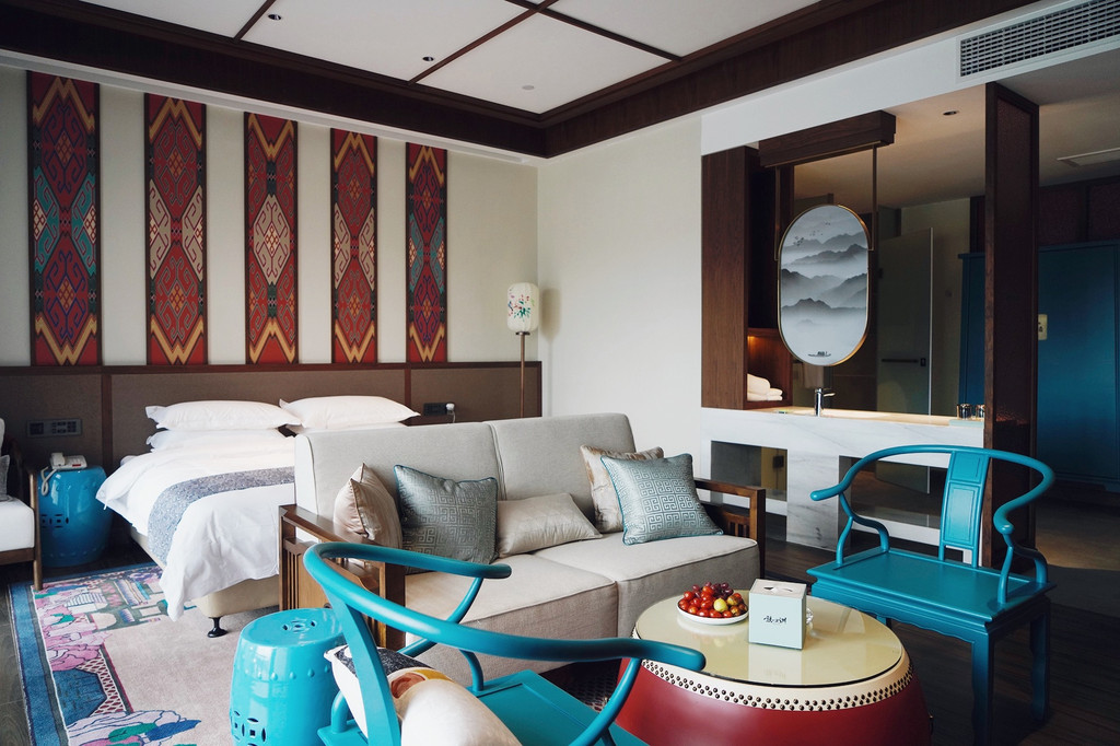 婺女洲度假区适合游玩两天一晚或是三天两晚,建议大家直接住在景区里,婺女洲度假区有1家星级酒店、3家精品酒店、2家商务酒店及10家风格各异的民宿,我们这次住在以徽剧、徽腔、徽艺为特色的无梦精品酒店。