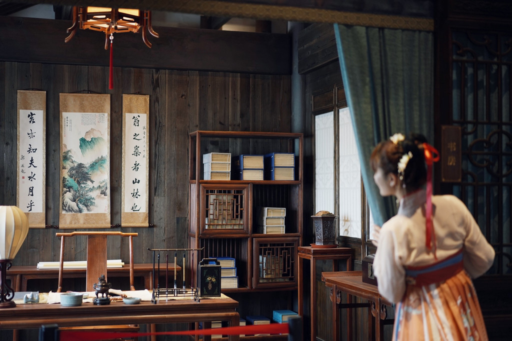 连理堂一共有两层,一层展示的是婚嫁习俗用品,二层布置了几间古色古香的房间,意境感很足。