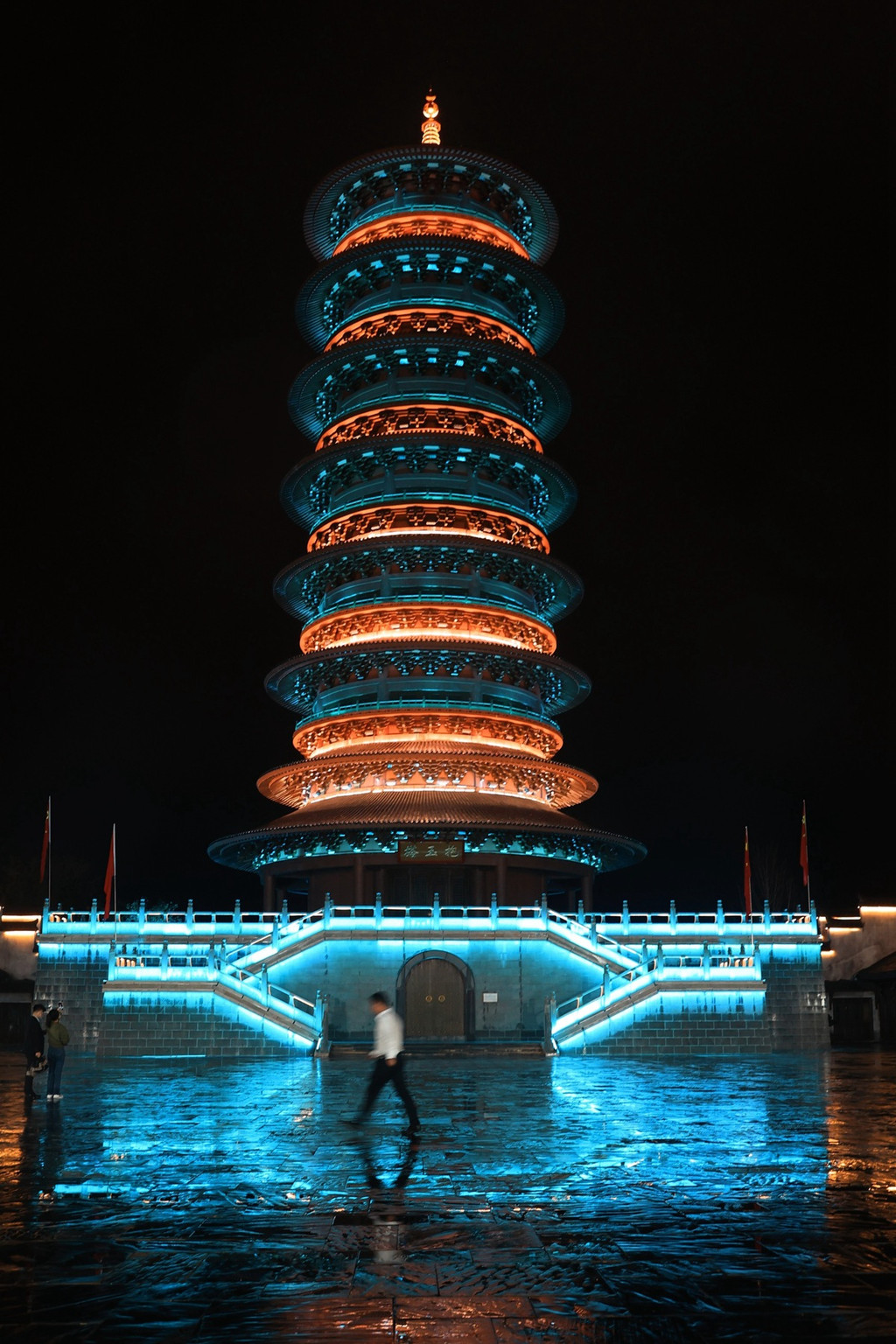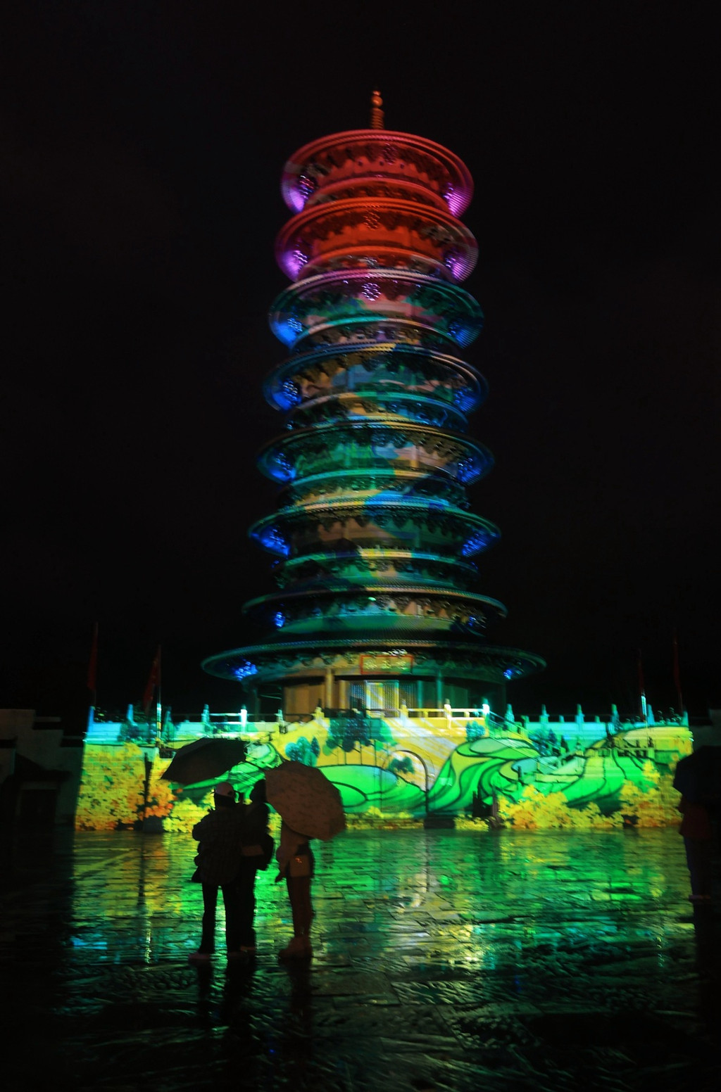 晚一点时抱玉塔会有《天工开婺》灯光秀,随着音乐的变化,塔身上被灯光照射出变幻无穷的图案,如同一部美轮美奂的科幻大片正在上演,为观众献上一场视觉与听觉盛宴。