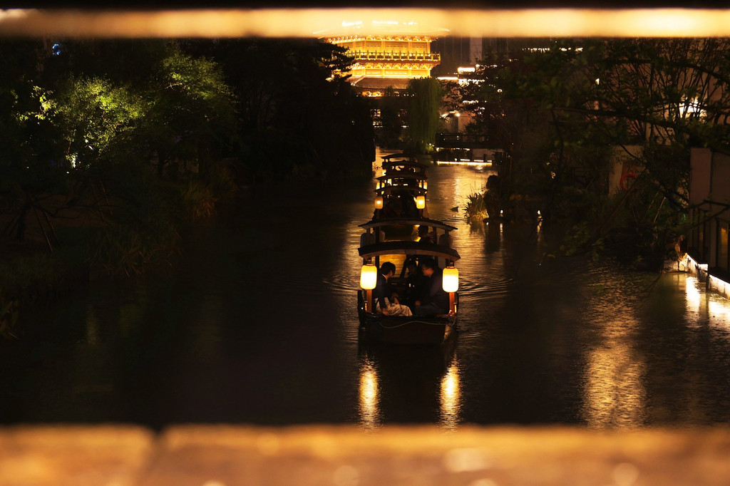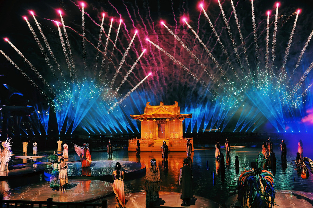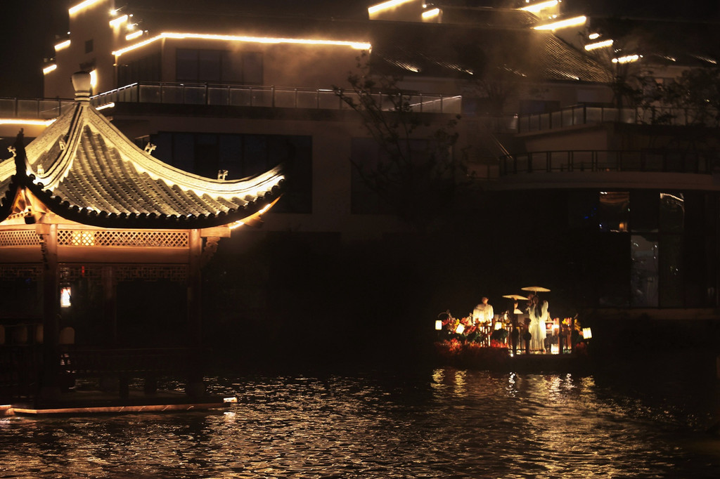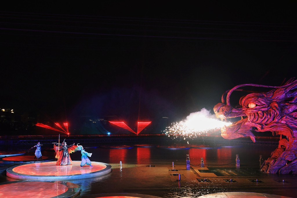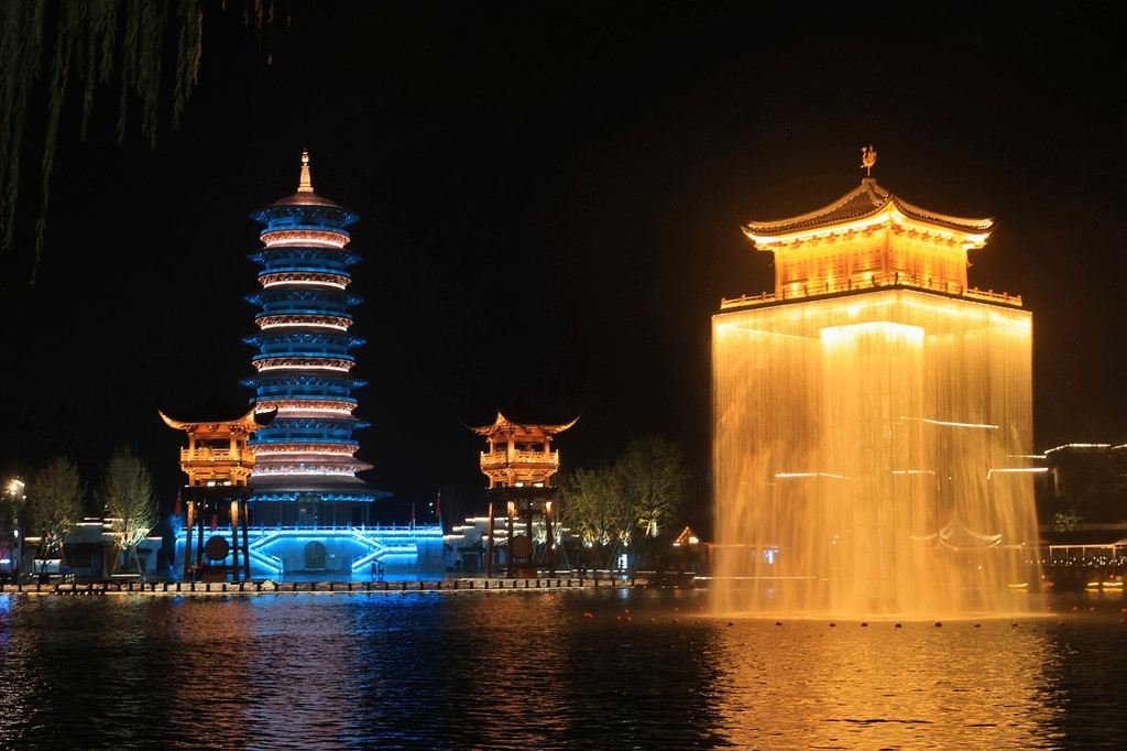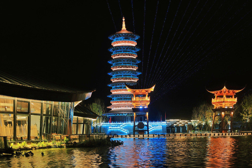 夜幕降临,整个景区灯火阑珊,光影变换,开始了精彩纷呈的夜游模式。