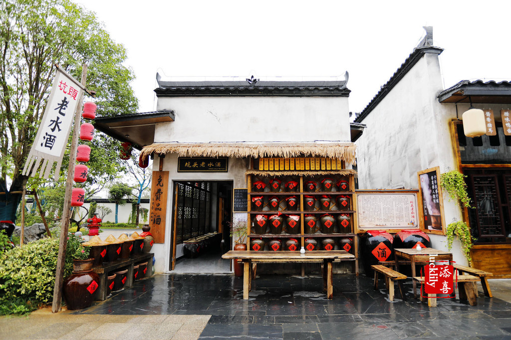 在街上有好多20余家颇具婺源特色的商铺,徽州严选、婺女洲邮局、婺源老水酒铺、灯笼铺、祈福店、八音盒等等都很有逛头。