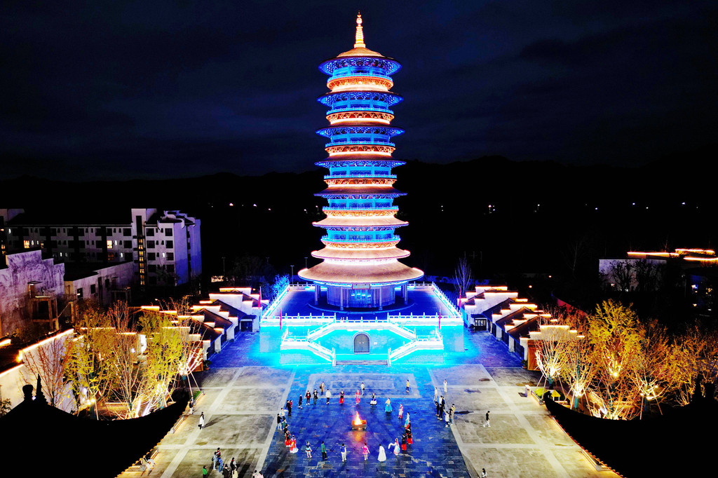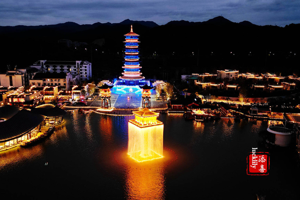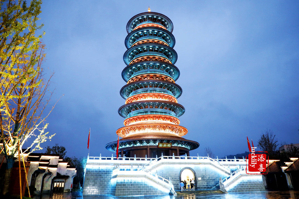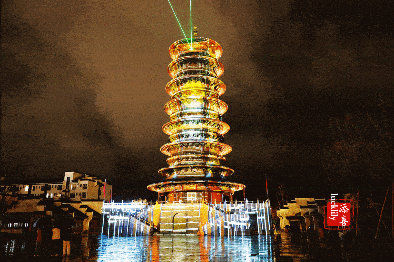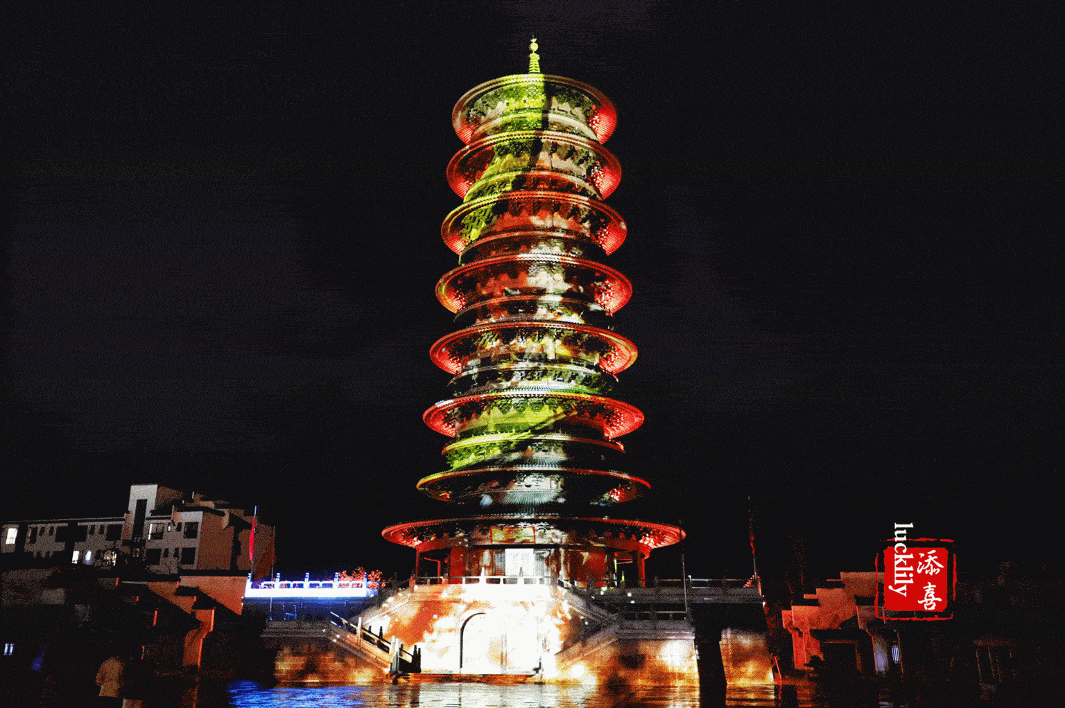 每晚9:00不可错过的是去往抱玉塔广场,欣赏从从古人智慧中获得灵感,打造奇幻抱玉塔Mapping秀《天工开物》。