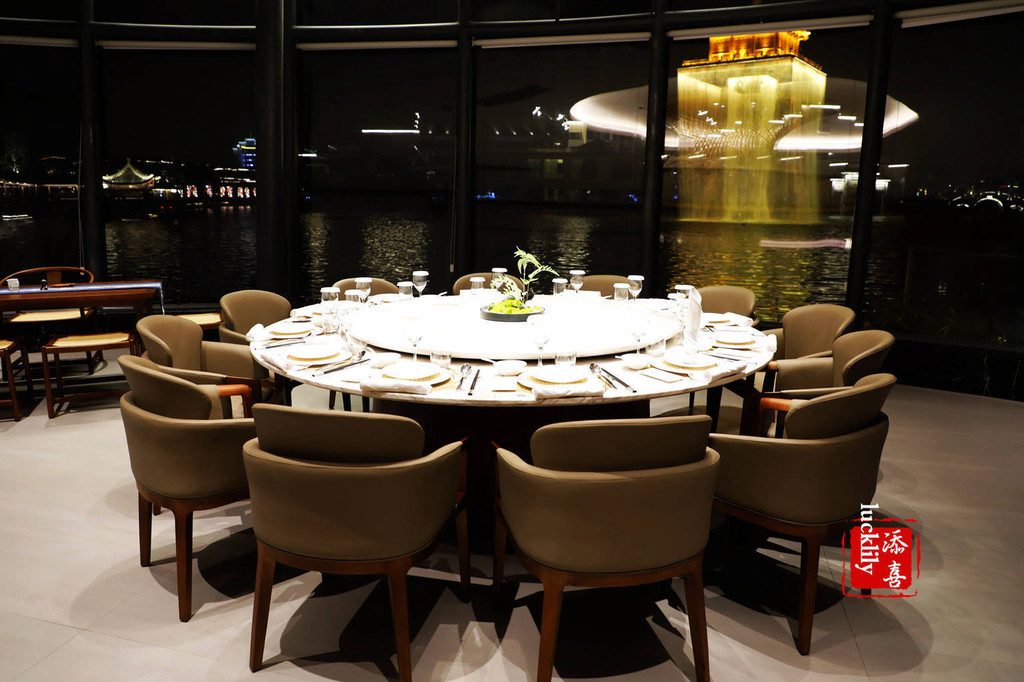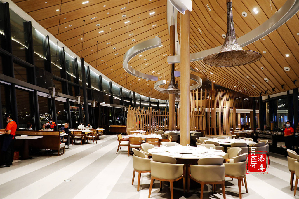 所以在水上餐厅享用晚餐更为绝妙,每一个餐席都能够观赏到窗外的景致。
