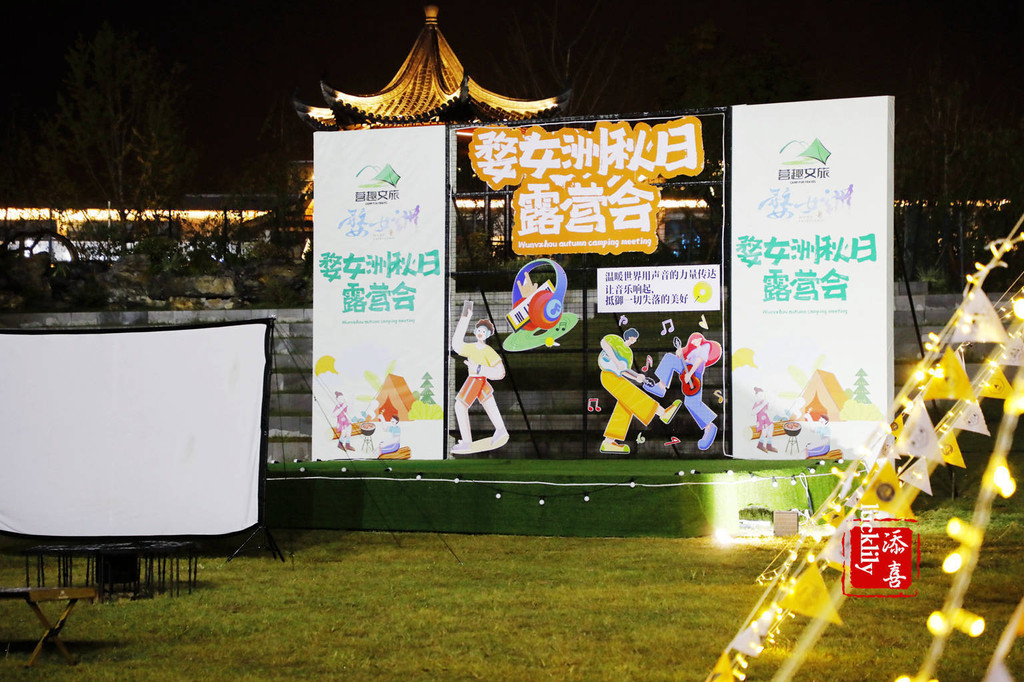 与《遇见·婺源》演出场相邻的音乐广场正在举办婺女洲秋日露营会,晚间有露天电影、烧烤餐饮档的提供,借着秋意在这里享受惬意时光也会是很棒的选择。