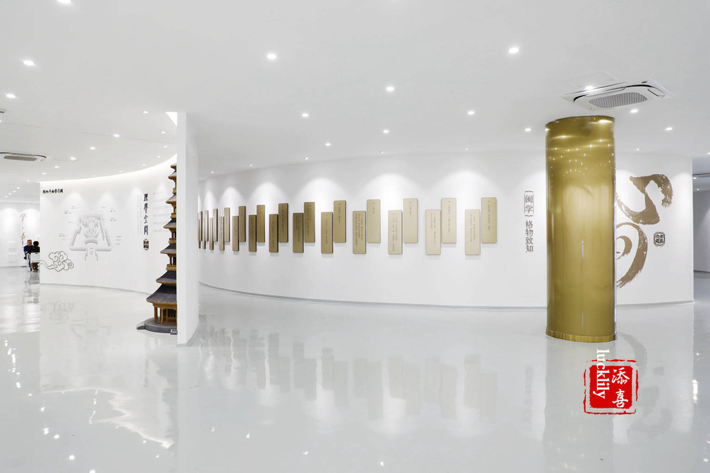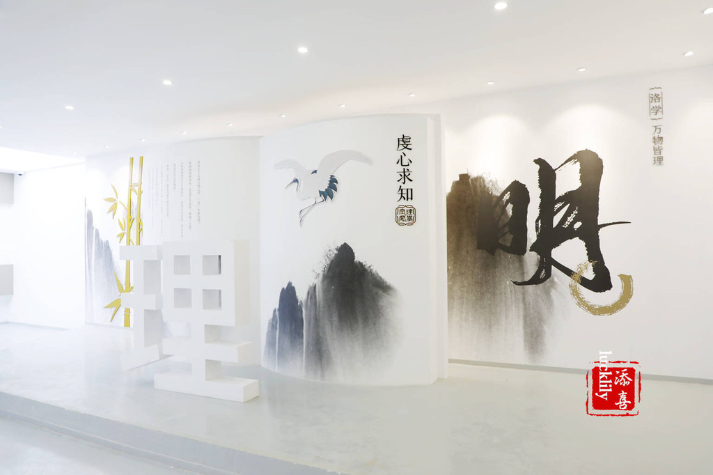 抱玉塔底层的地宫为理学艺术展示空间。 以科技与艺术式的表达,黑与白的纯净氛围,展现理学的发展、 理学与心学的理念演变,感受中国传统哲学艺术中格物致知、知 行合一的精神追求,是景区物理空间与精神文化的双重至高点。