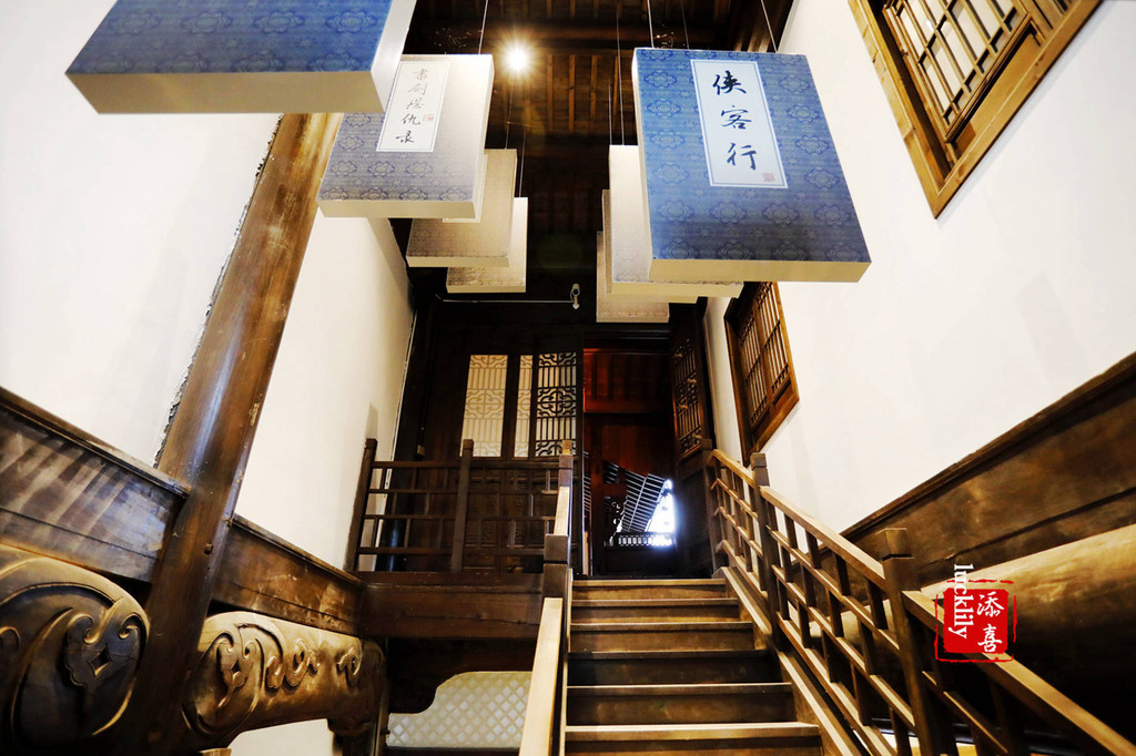 金庸先生曾经在采访时提到自己的祖籍是江西婺源,与婺源有着不解的缘分。所以在婺女洲景区内特别为纪念他而建造了一年金庸馆,场馆分为上下两层,进内的天井内就能看到《神雕侠侣》中的雕兄,且这位雕兄身上可全是真正的羽毛,可以在场馆的细节打造还是煞费用心的,场馆一楼展示金庸先生的生平及其作品文献,二楼有一室还原了电视剧《鹿鼎记》中御书房的场景。