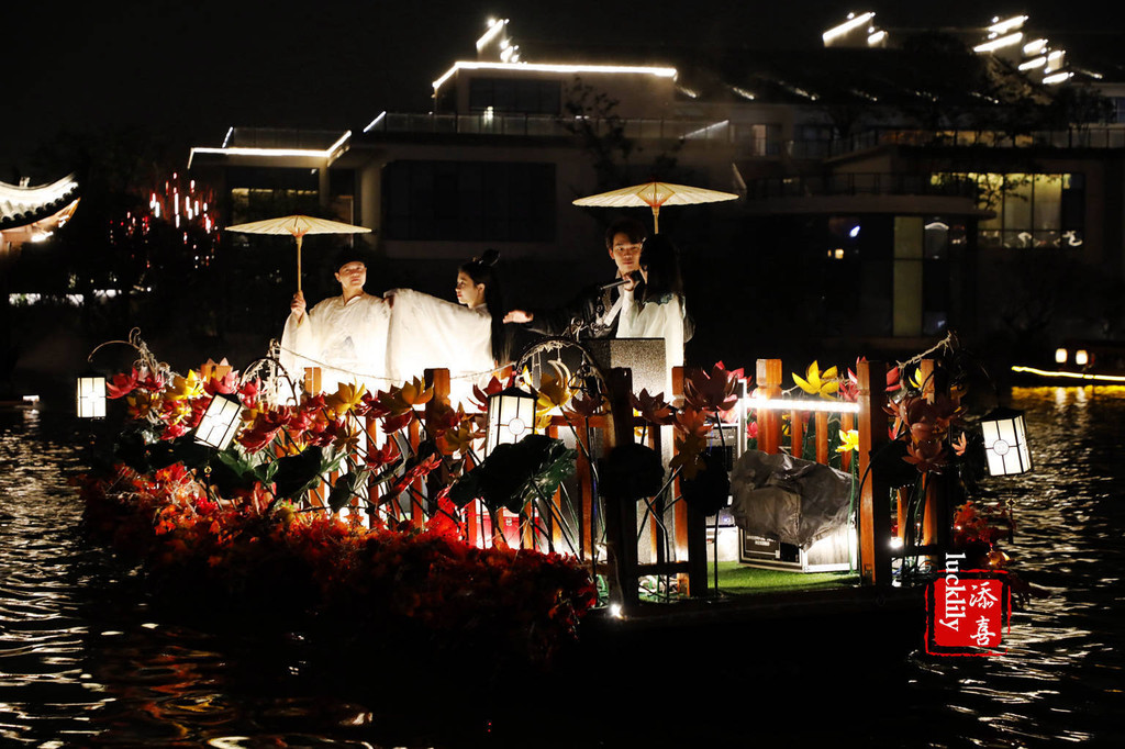 《天工开物》结束后会紧接在五显湖中有一场花船巡游的表演秀,伴着船上演员动人的歌声,花船会在五显湖中环绕两周,时长约20分钟,像我这间无梦酒店向着五显湖的客房以及水上餐厅中的客人此时都会近距离欣赏到表演,花船巡游的表演时间有多场,除了夜间这一场,下午4:00也有一场,日夜两场拍摄出来的效果也不一样,都值得欣赏。