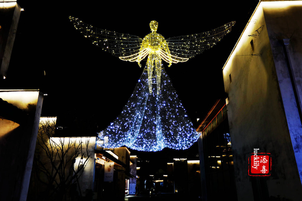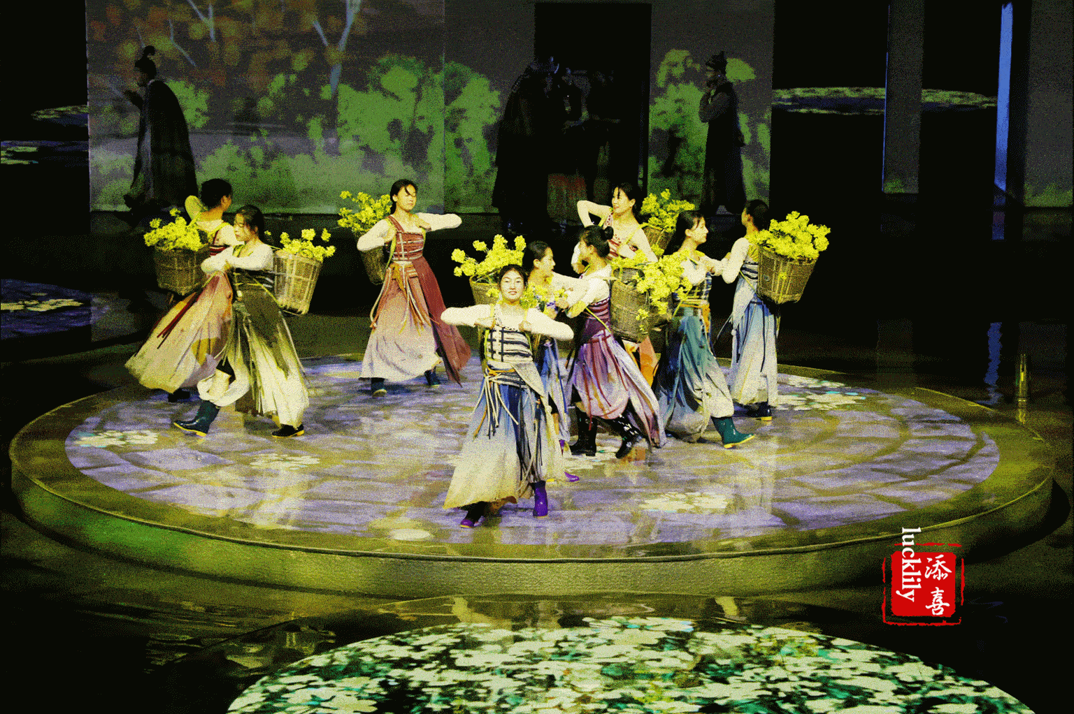 用餐后前往观看《遇见·婺源》,时间大约一小时,这是鑫邦文旅斥资2亿元打造的大型户外实景演出,以婺女飞天为题材背景,运用写意的戏剧手法,采用世界领先的声、光、电科技手段和舞台机械,令光影、水幕电影与实景交相呼应,通过这种科技+歌舞表演的特殊方式,描绘出一 幅波澜壮阔的盛大画卷。一段神仙与凡人的传奇故事,一抹缘起而缘落的思乡情怀鲜活的展示在观众眼前,令像我这样初来婺源的观众自此也就有了深刻的婺源印象,对于婺女更是满怀敬仰。
